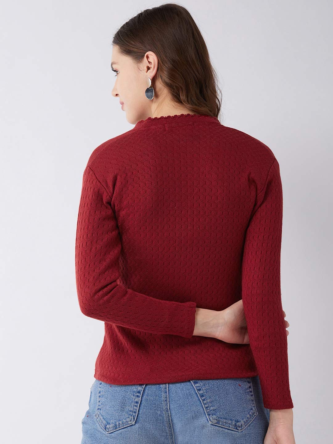 Stay in style during the chilly days of Winter by wearing this full sleeves V Neck Sweater for women from the house of Pivl. Its finest Acrylic Blend fabric affirms sheer comfort all day long, keeps you warm yet gives you a stylish & elegant look. Featuring regular fit, this sweater is a class apart from others. You can pair this sweater with faded denims, leather shoes or sneakers to complete your look. A quality product from the house of Pivl, known for its unique collection of designer Tshirts,Track Pants, Capris, Jackets, Shrugs,Ponchos, Sweaters,Sweatshirts,Pullovers & Cardigans.