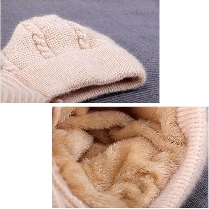 2 in 1 Windproof Scarf With Cap Integrated Ear Guard Hat Plus Velvet, Winter Warm Soft Knitted Beanie Hats Scarf- Woolen Lovely Muffler Fur Cap with Stylish Muffler Woolen Caps for Women & Girls