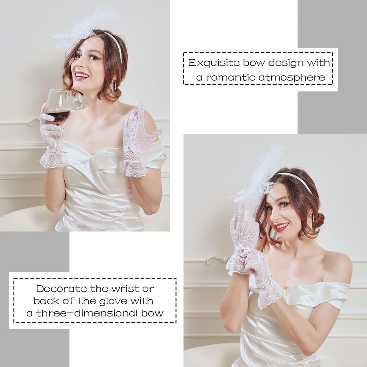 2 Pairs Net Gloves for Women, Elegant Lace Gloves for Wedding Bride White, Black Gloves for Gothic Party, Stylish Cordsets for Women, Lace Dress Accessories