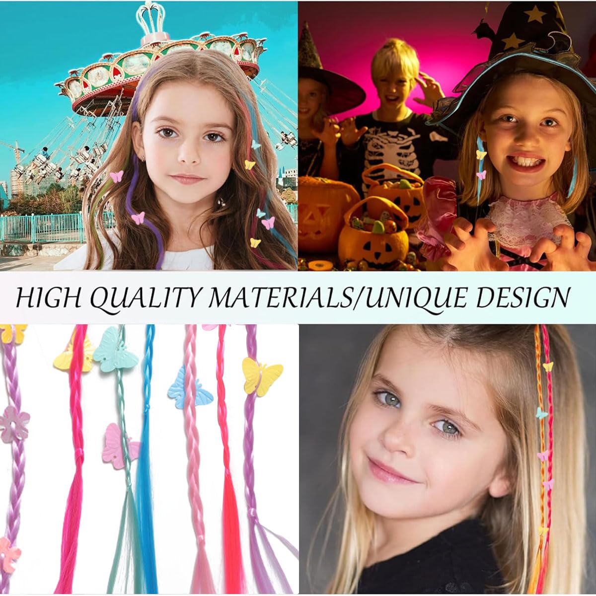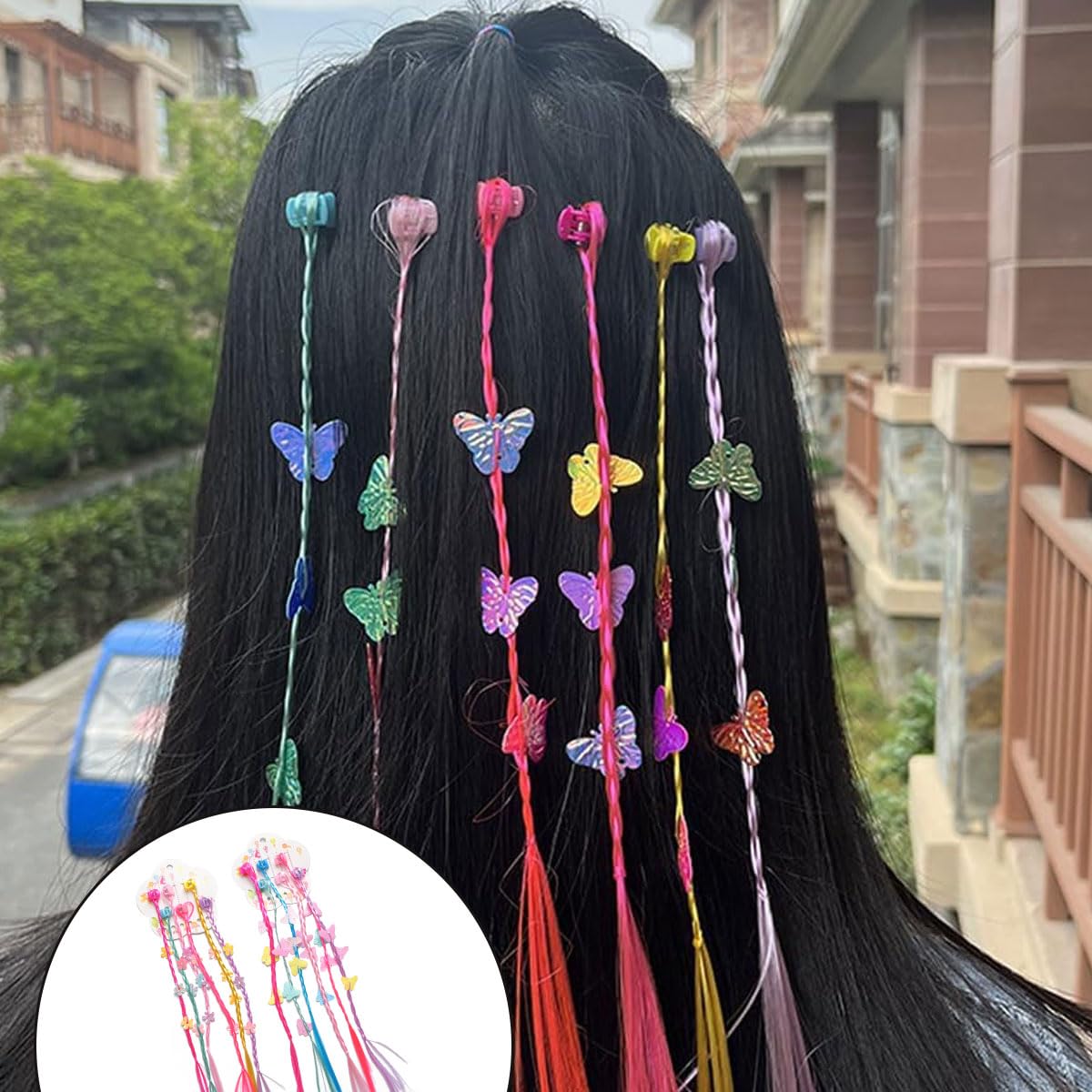 Vibrant Hair Accessories: These 2 Piece Set hair clips feature glitter butterfly and flower designs, adding a playful and stylish touch to any hairstyle; The colorful braided hair bands are perfect for kids and young women, enhancing their look for various occasions