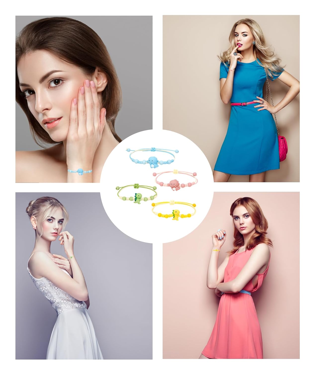 4 Pack Dinosaur Rakhi for Kids, Braided Friendship Bracelets for Girls, Teens and Young Women, Matching Dino Rakhi for Kids Boy, Symbol of Friendship and Love, Fashion Accessory