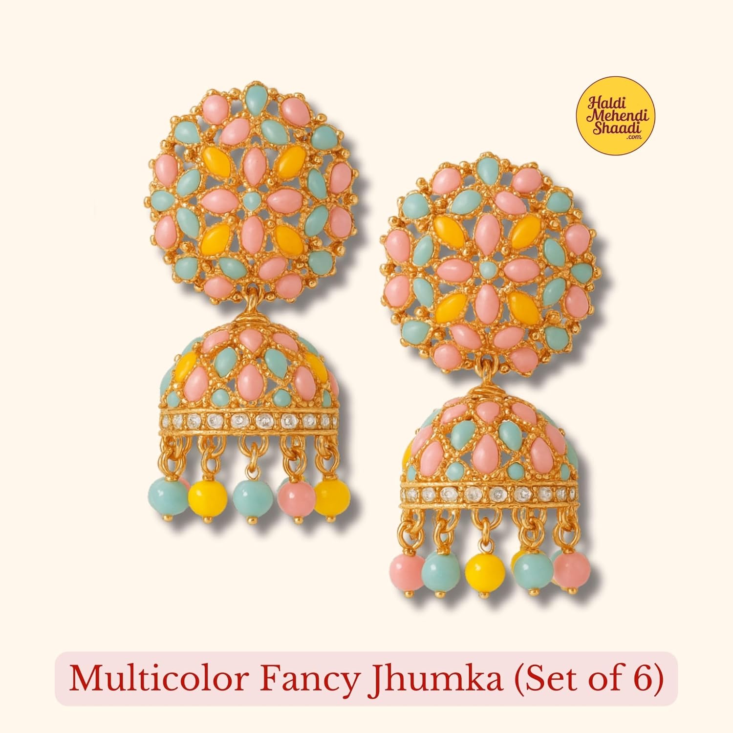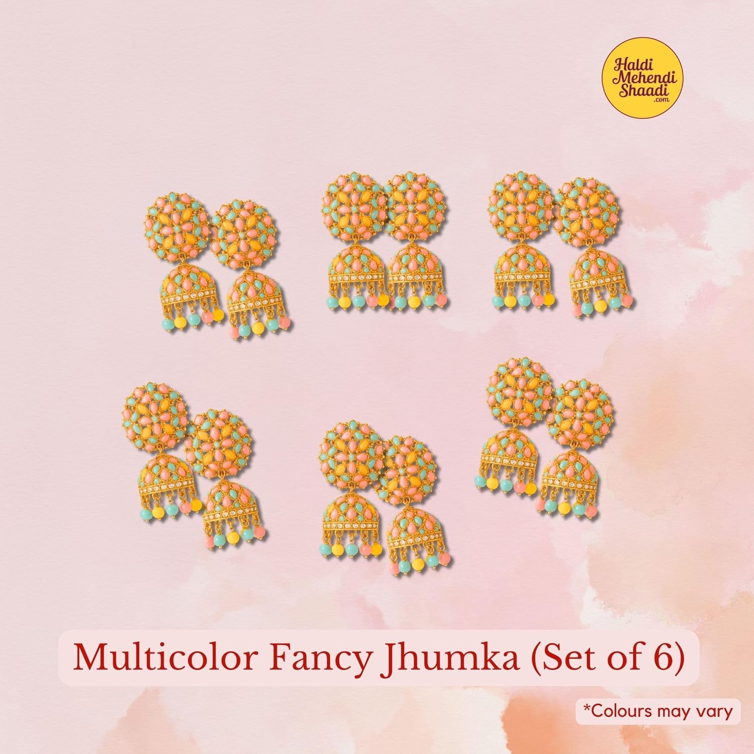 6 Pairs of Traditional Antique Gold Plated Earrings for Women & Girls | Return Gift for Diwali, Weddings, Haldi Kumkum, Varalakshmi Pooja