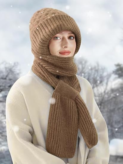 7Seas 2 in 1 Scarf Winter Warm Conjoined Ear Protection Knitted Hat,Thickening Beanie Hat Scarf,Women Winter Knitted Warm Hat Scarf,Ear Protection Woolen Hat Scarf,Outdoor Winter beanie and Muffler