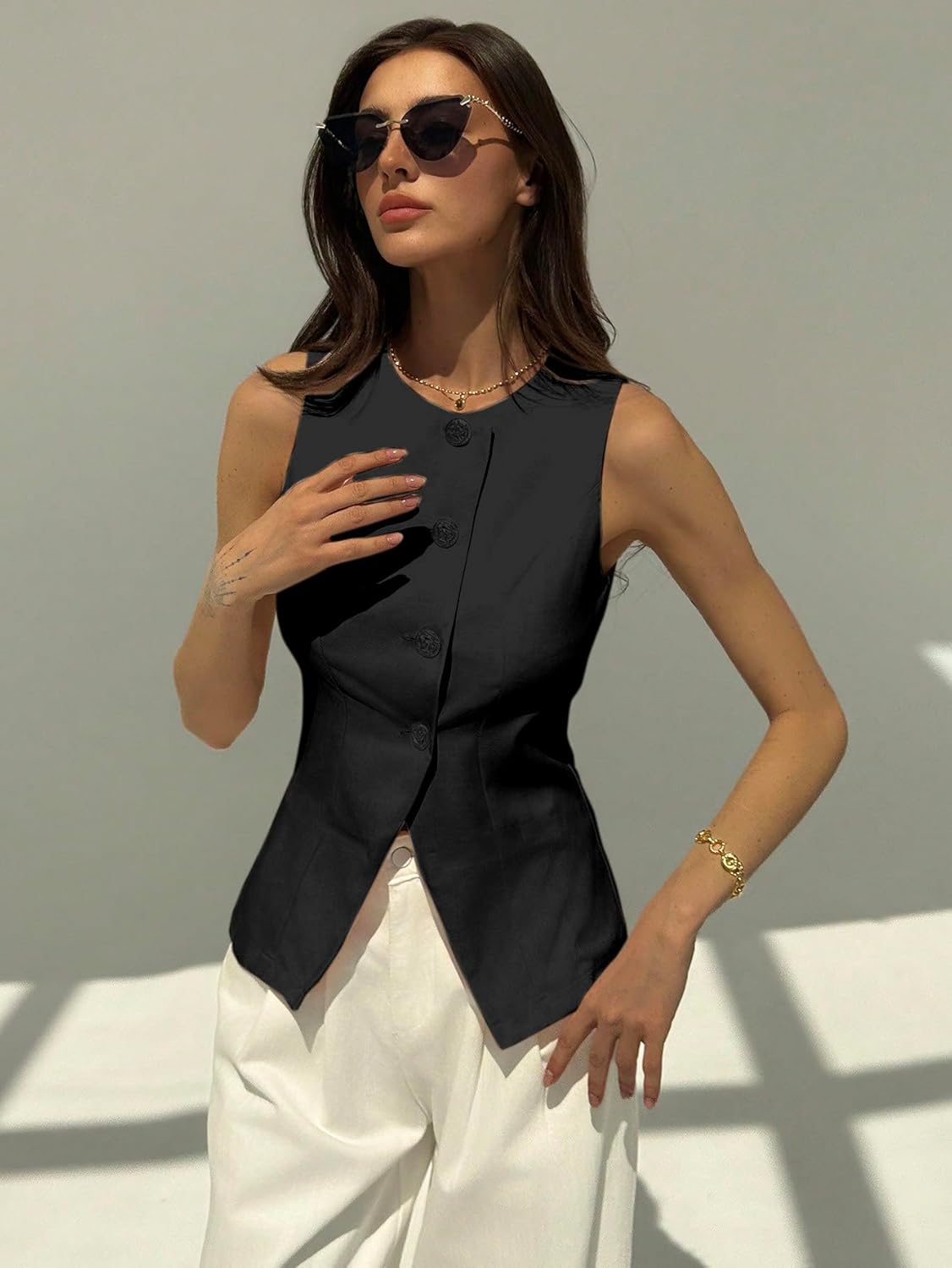 Aahwan Solid Modern Sleeveless Fitted Waist Slim Round Neck Blazer& Top for Women’s & Girl’s