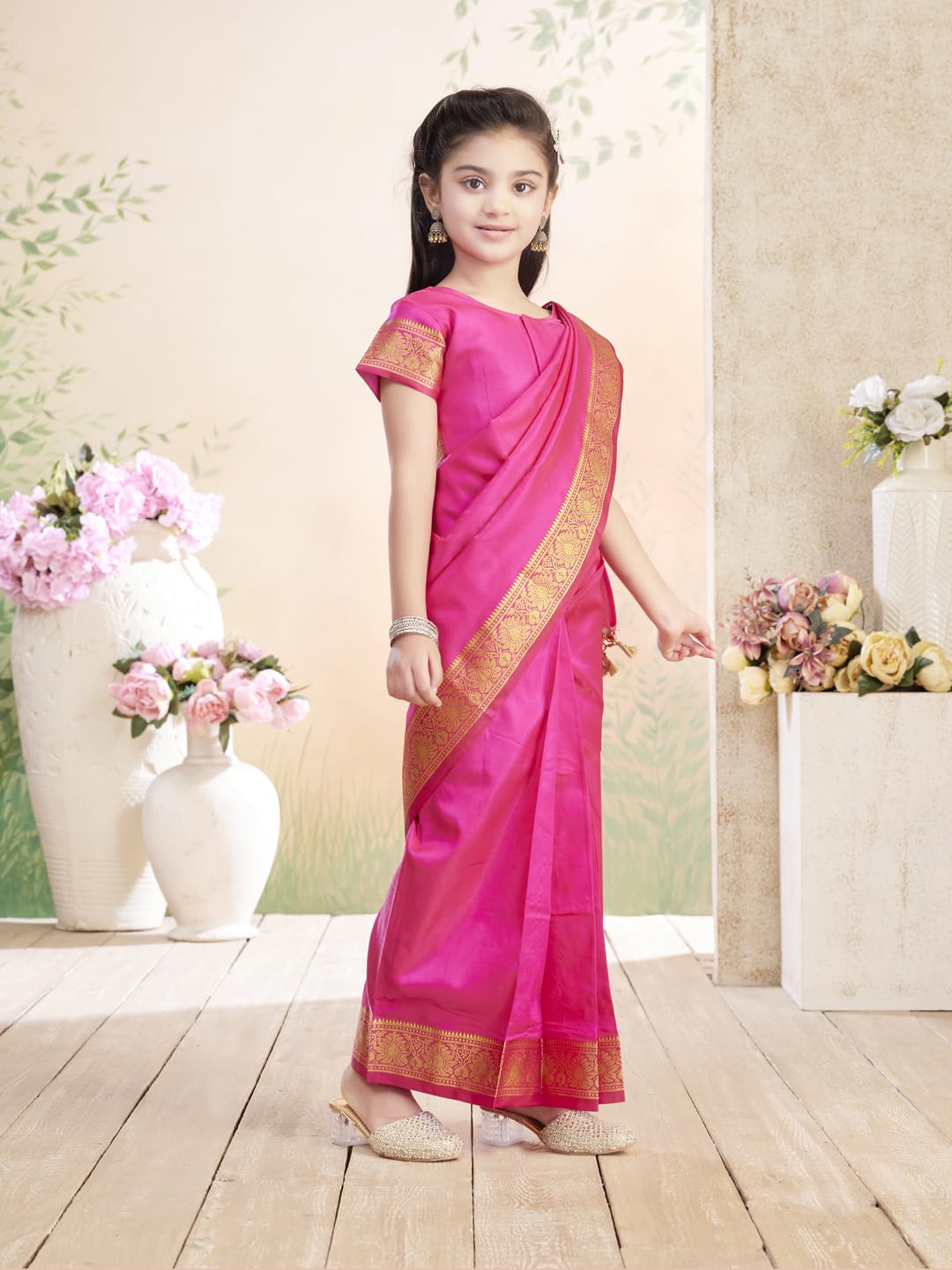 Aarika Girls Ethnic Wear Blue Colour Zari Silk Saree