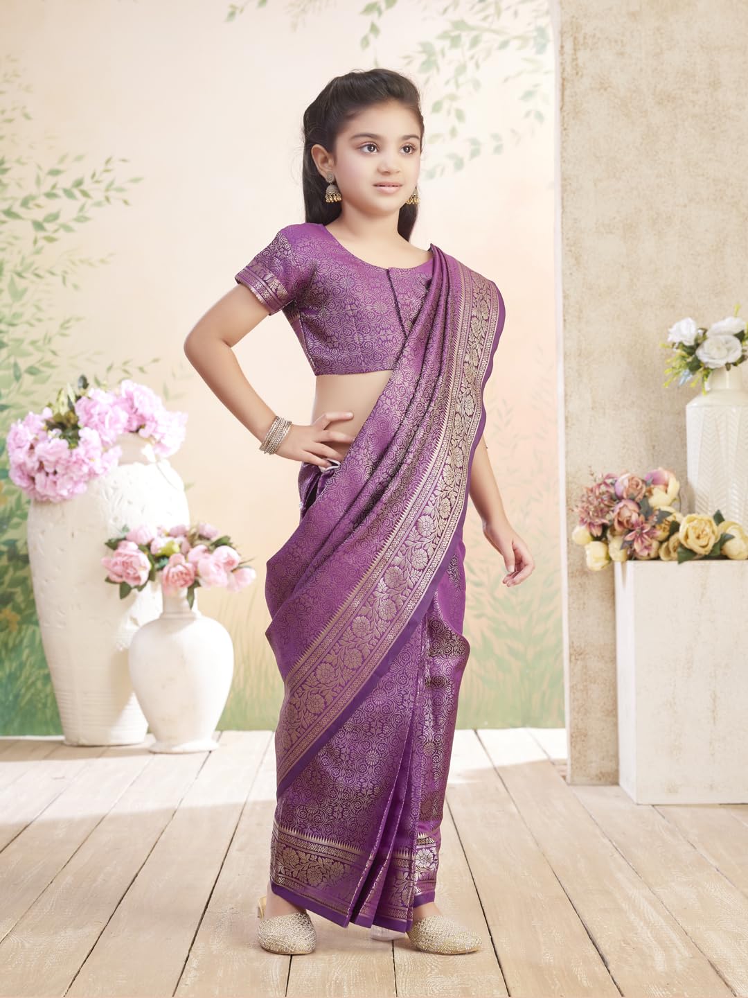 Aarika Girls Ethnic Wear Rama-Purple Colour Zari Silk Saree
