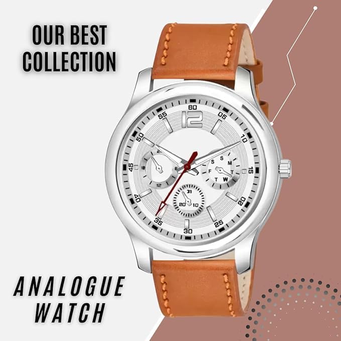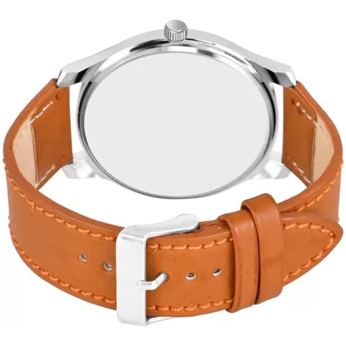 Acnos® Analogue Watch Leather Strap Black Blue White Dial Brown Belt Analog Wrist Watch for Men Boy Watch Pack of 1