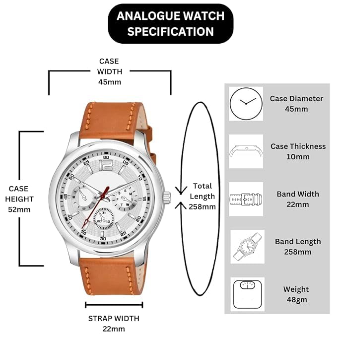 Be the first to review “Acnos® Analogue Watch Leather Strap Black Blue White Dial Brown Belt Analog Wrist Watch for Men Boy Watch Pack of 1” Cancel reply