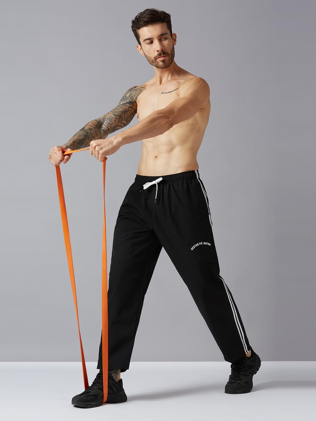 Aesthetic Nation Men’s Teal Track Pants | Air Straight Fit Joggers with Double Side Stripe, Stretchable Nylon-Spandex Fabric, Drawstring Waistband for Gym, Training & Casual Activewear