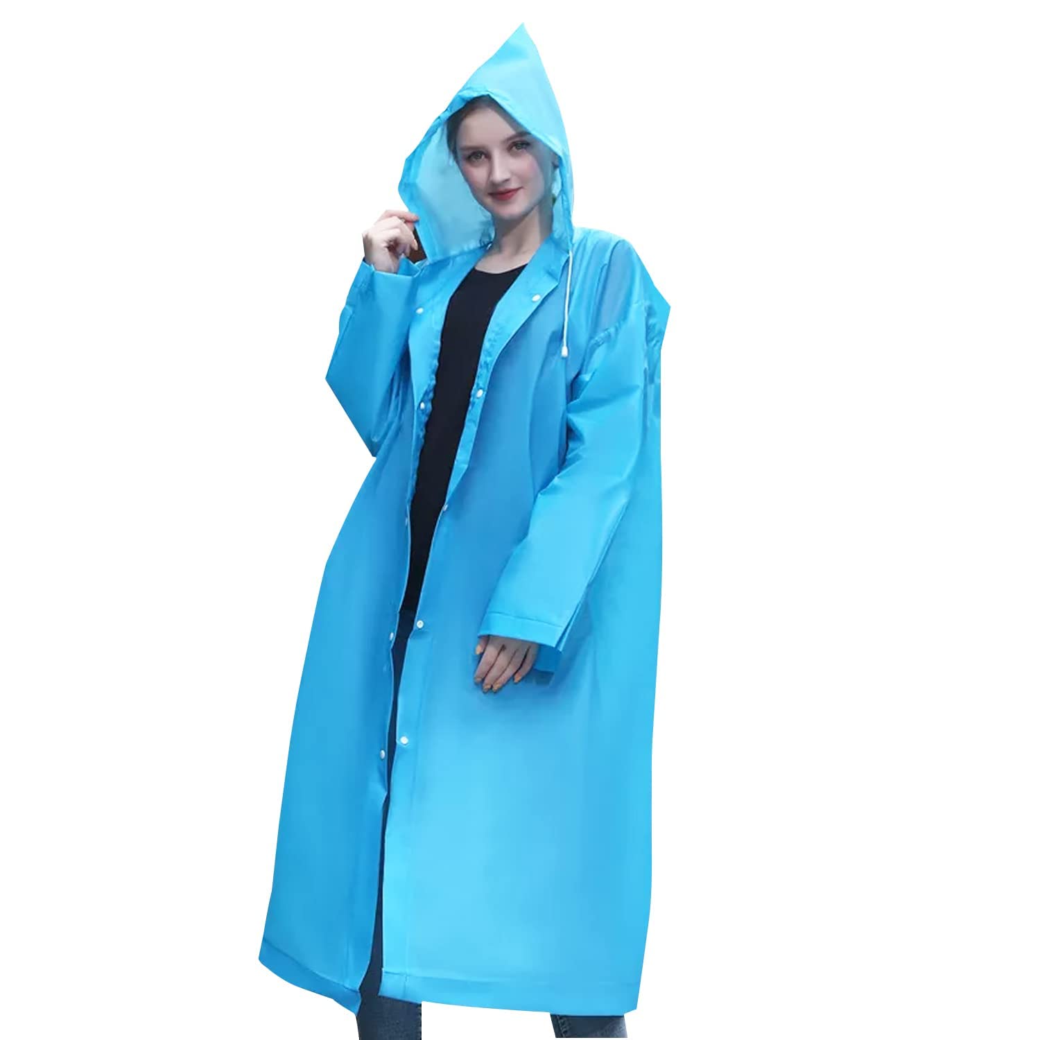 REUSABLE & DURABLE: Unlike ordinary disposable raincoats, this clear raincoat for men & women is not only quick-drying but also reusable. High-quality EVA material allows it to be recycled for long periods of time. With this rain jacket, you don’t need to worry about purchasing raincoats again and again, saving your money effectively.
