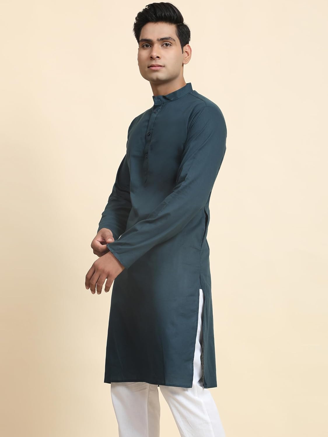 Amazon Brand – Anarva Men’s Cotton Solid Dress Long Kurta Regular Fit Casual