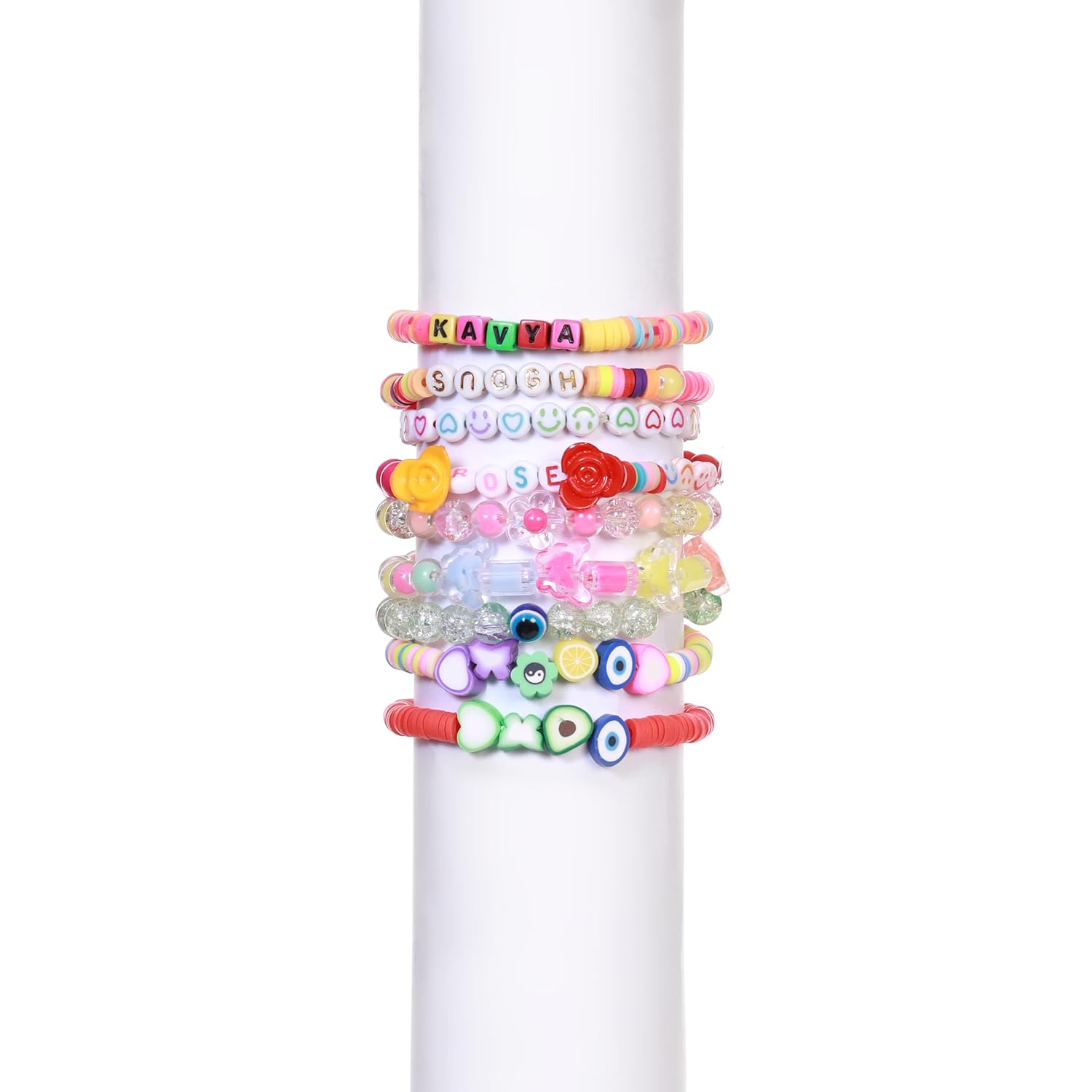 Includes a colorful mix of evil eye, pearls, alphabet letters, smiley faces, hearts, and charming motifs – perfect for endless design possibilities.