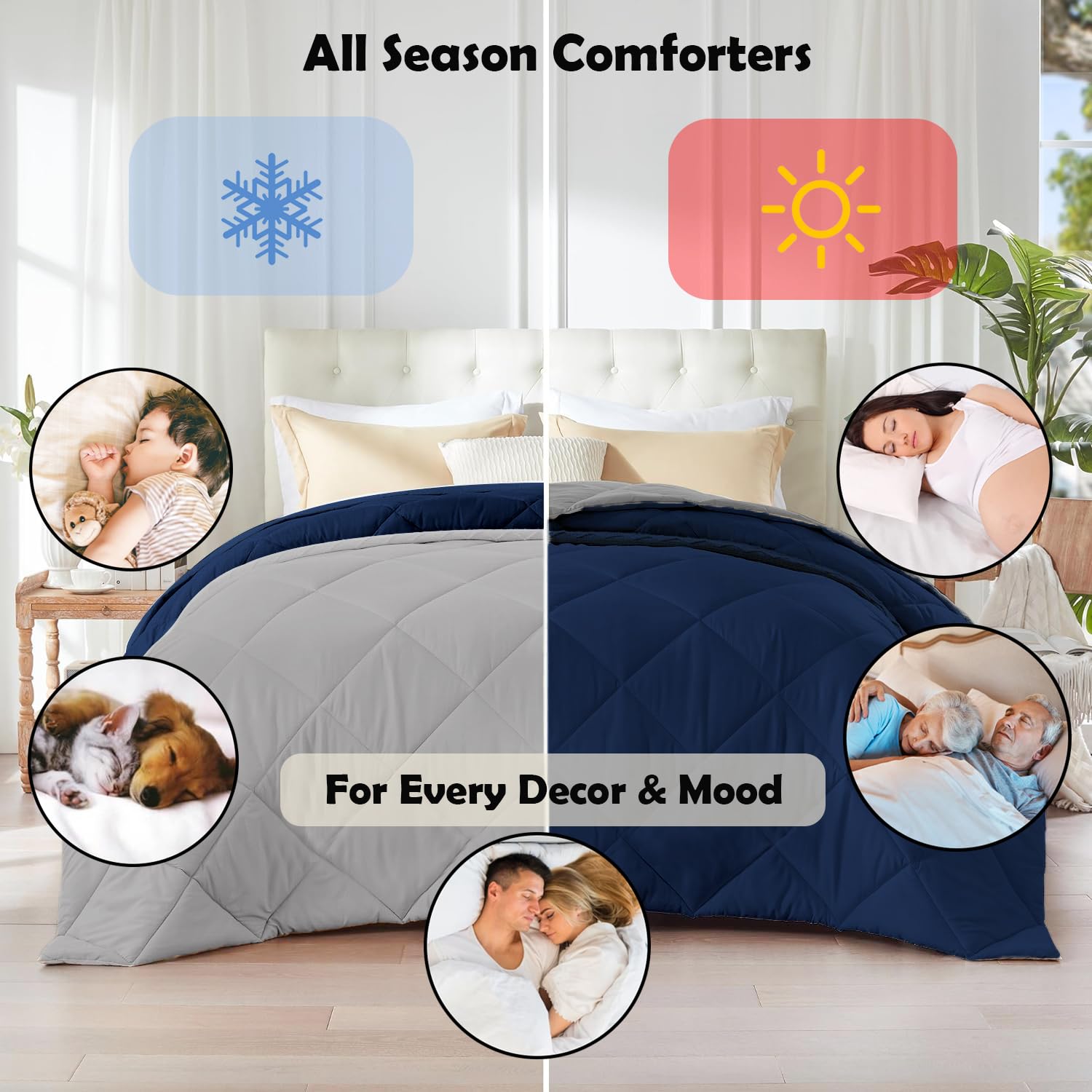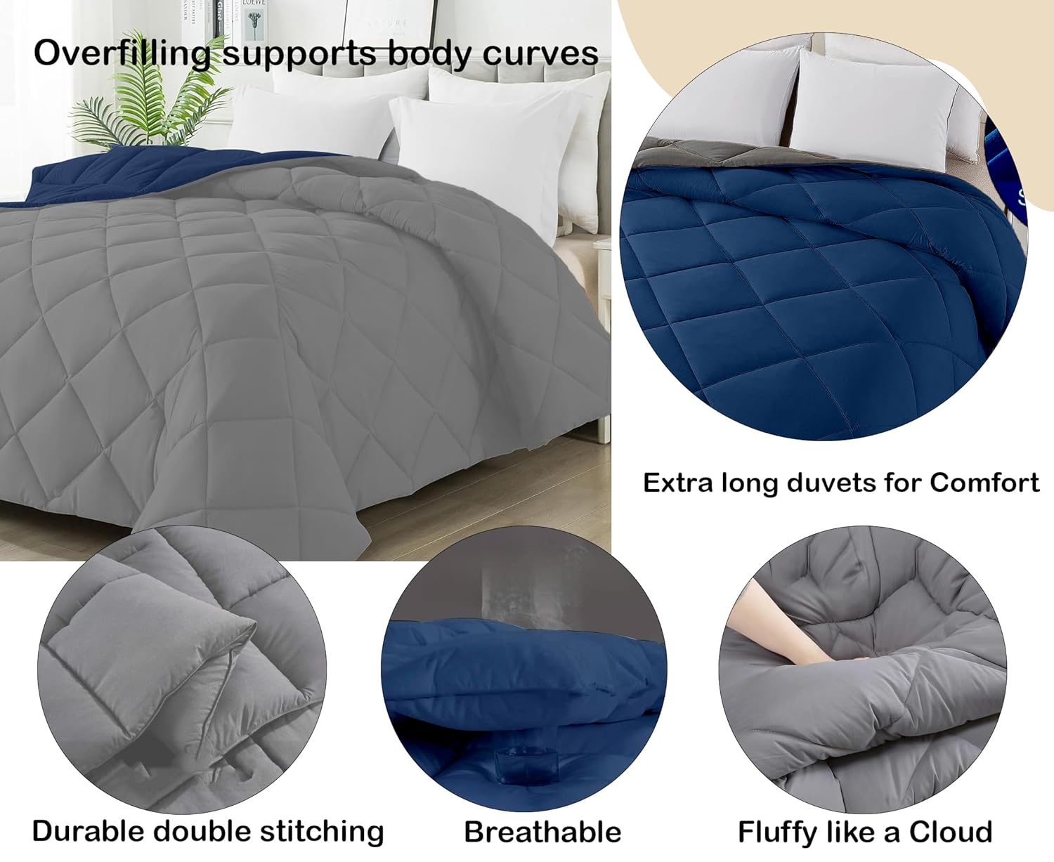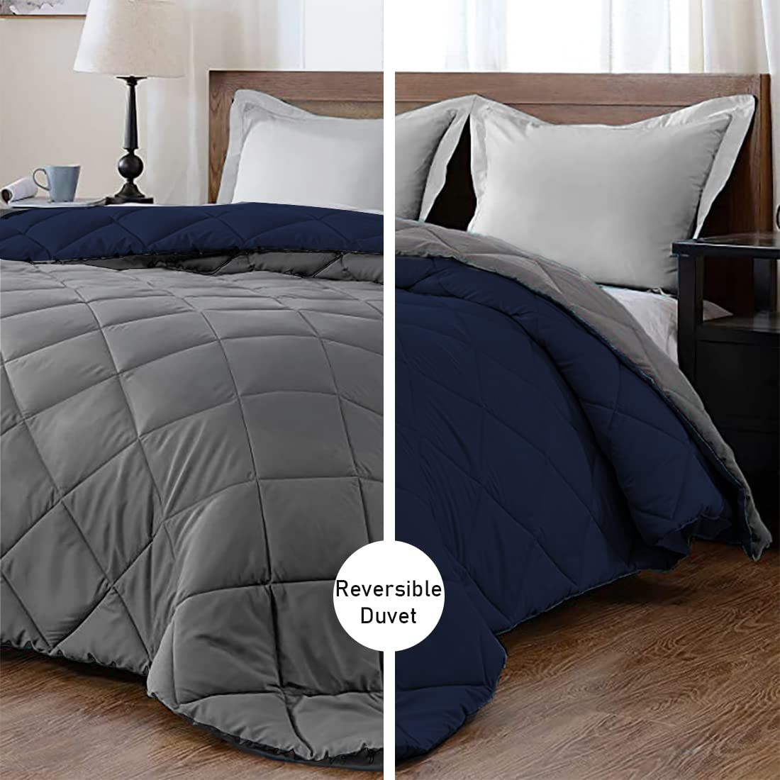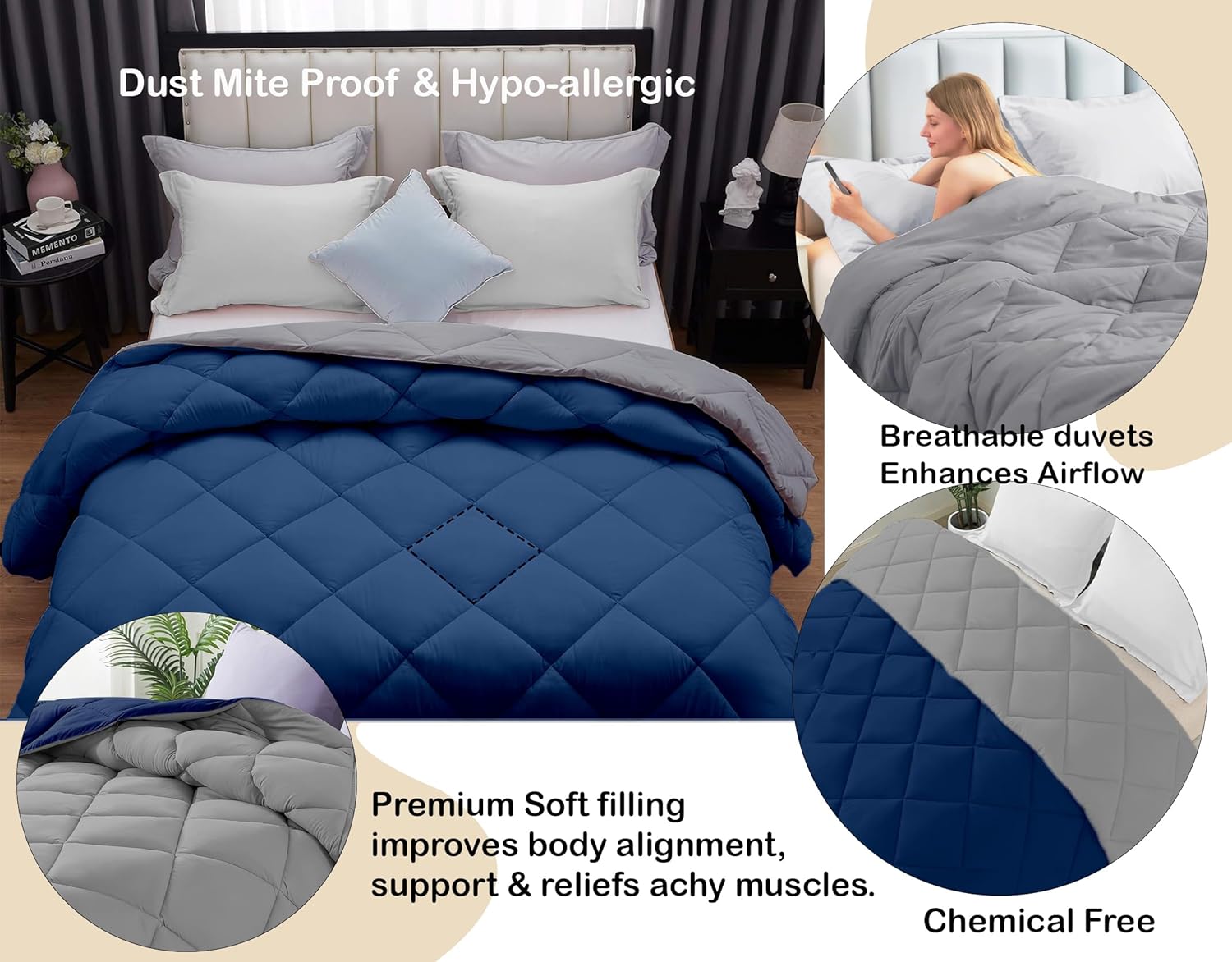 AYKA Reversible Comforter 220 GSM Microfiber Reversible AC Comforter/Blanket for Winter/Quilt/Duvets for King Size Double Bed Comforter (90 * 100, Navyblue & Grey)| TC – 220