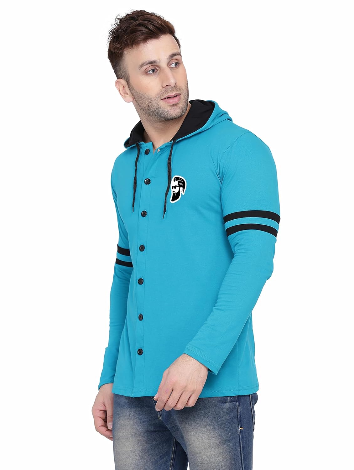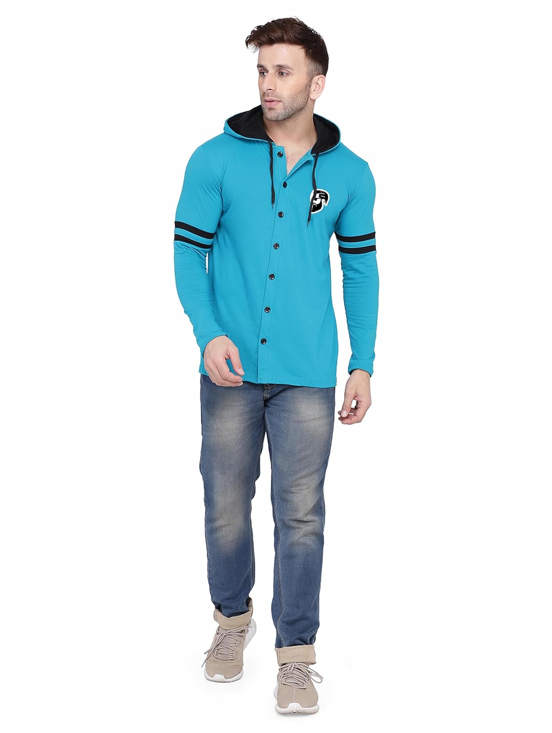 Be the first to review “Blisstone Men’s Full Sleeve Hooded T-Shirt with Button Closure & Contrast Striped Sleeves | Stylish Cotton Blend Hoodie for Casual Wear Turquoise” Cancel reply