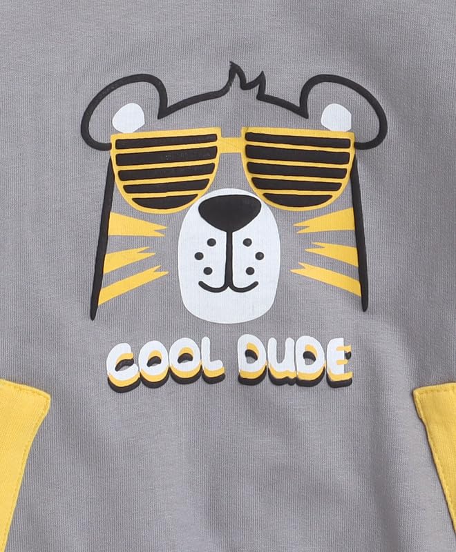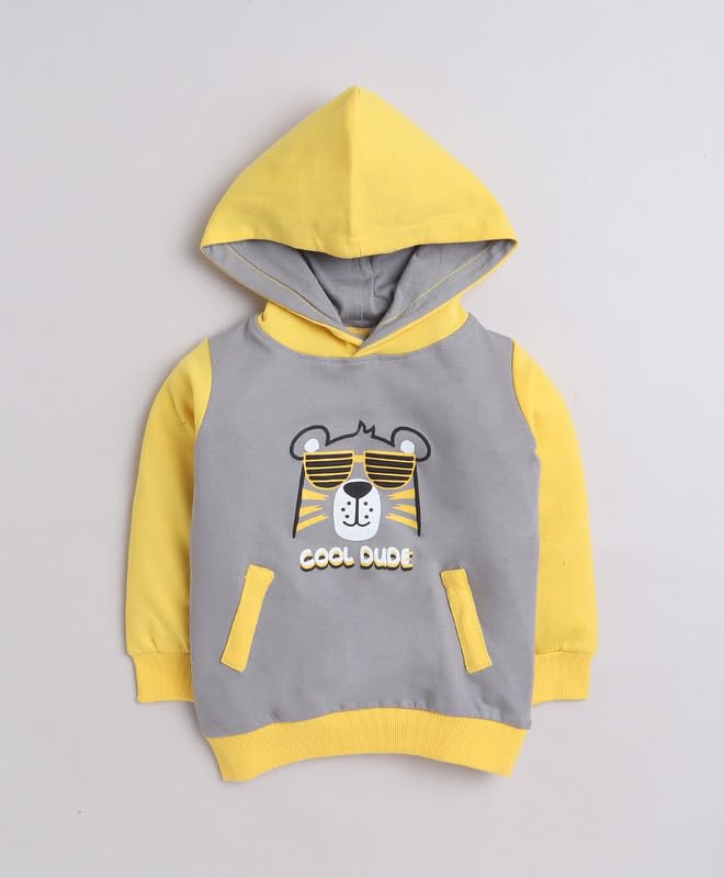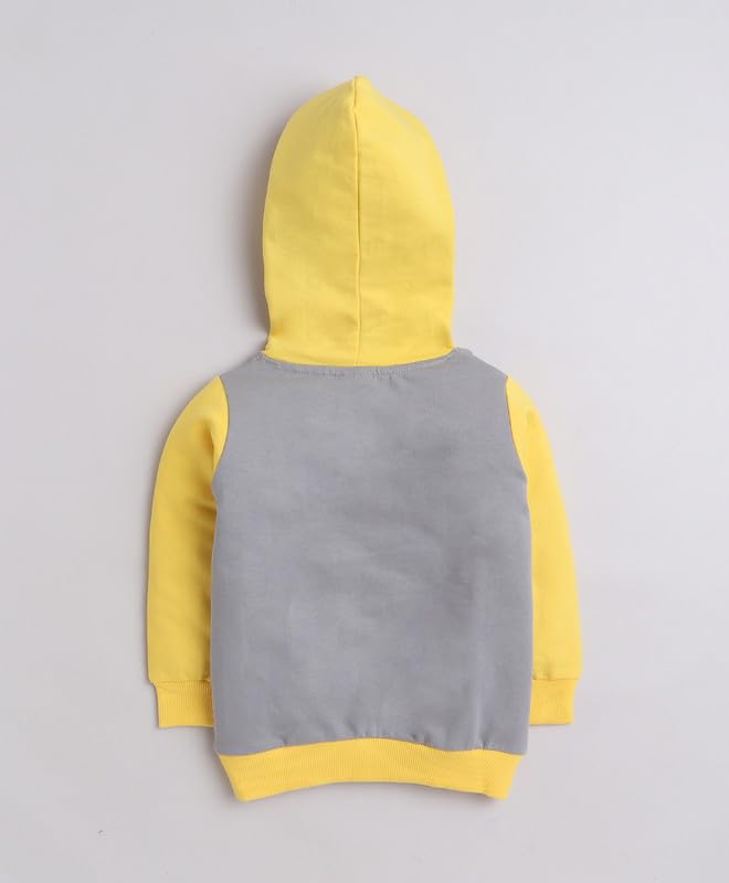 BUMZEE Grey & Yellow Boys Full Sleeves Cotton Hooded Sweatshirt (Peb9706)