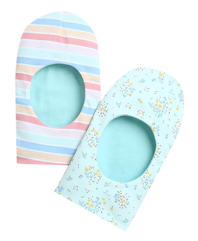 BUMZEE Mint & Multi Girls Cotton Reversible Monkey Cap Pack of 2 (Peb9542)