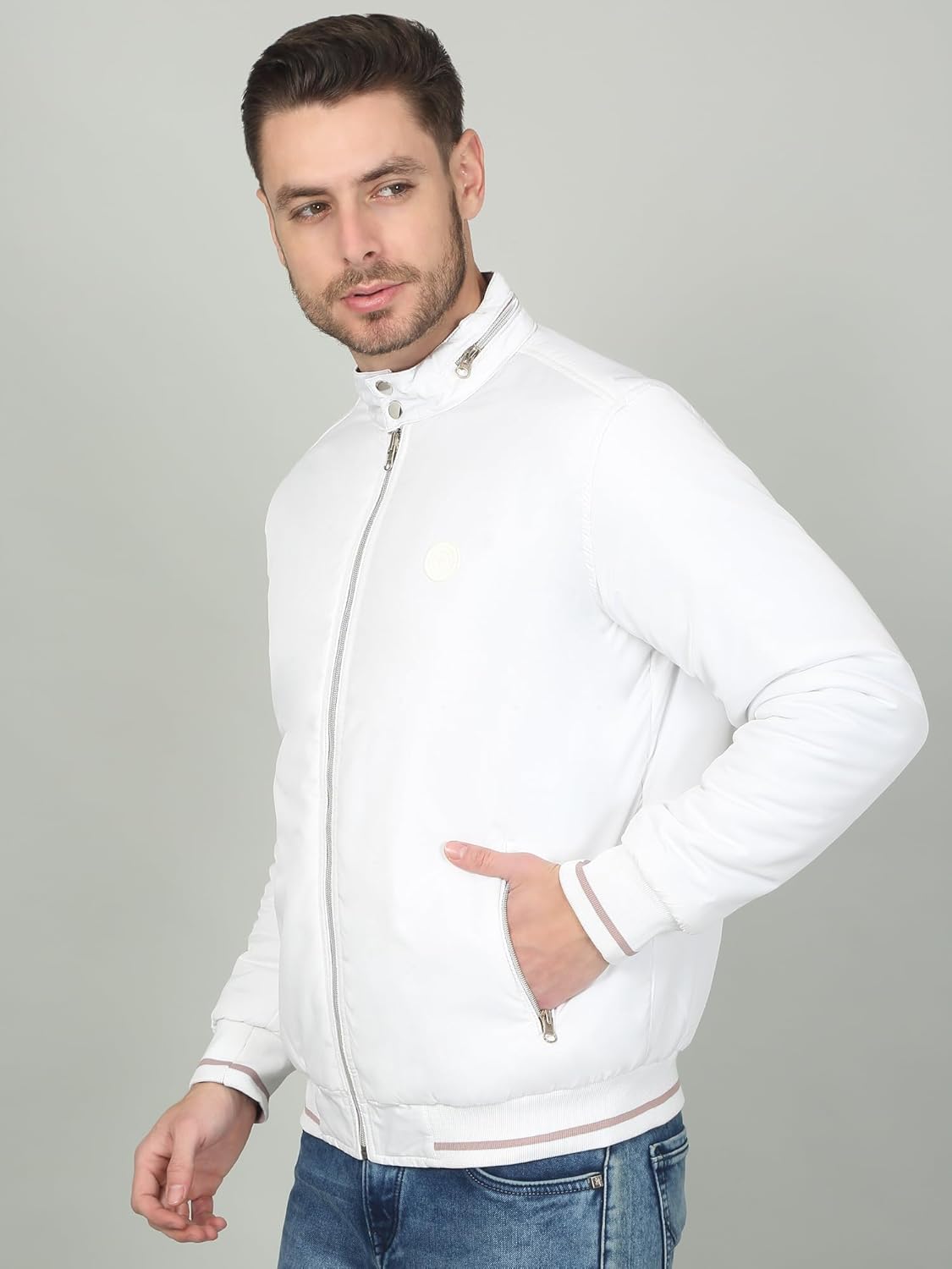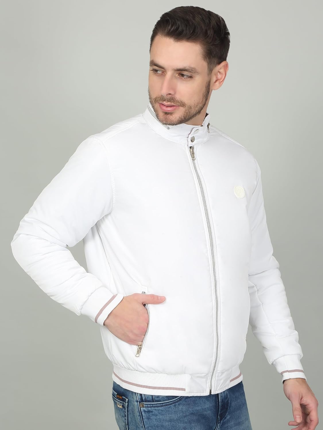 Cantabil Solid White Full Sleeves Mock Neck Regular Fit Men’s Casual Reversible Jacket | Casual Winter Jackets for Men | Mens Jackets for Winter Wear (P_MJKT00247)