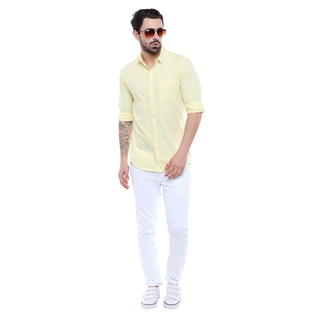 This Casual Solid shirt has a Slim fit, Spread collar, full button Placket, Full Sleeves, and a curved hemline Size and Fit Slim Fit The Model (height 6 foot and shoulders 18 inches is wearing size 40/M Please check the size chart for more details before ordering Material & Care 100% Premium Cotton (Machine Wash Regular) Style Tip Enhance your look by wearing this Casual Stylish Men’s shirt, Team it with a pair of Chinos or Tapered Denim and Sneakers for a fun Smart Casual look About the Brand DENNIS LINGO Finding Basic Menswear for daily use can be hard among todays Fast fashion world, where trends change daily. That’s why we started Dennis Lingo, to create a one stop shop for premium essential clothing for everyday use at lowest prices.