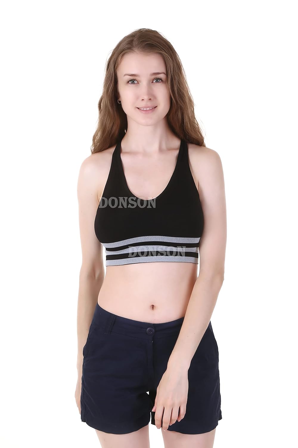 DONSON Padded Strappy Sports Bras for Women – Activewear Tops for Yoga Running Fitness Size (28 Till 34) Black Color
