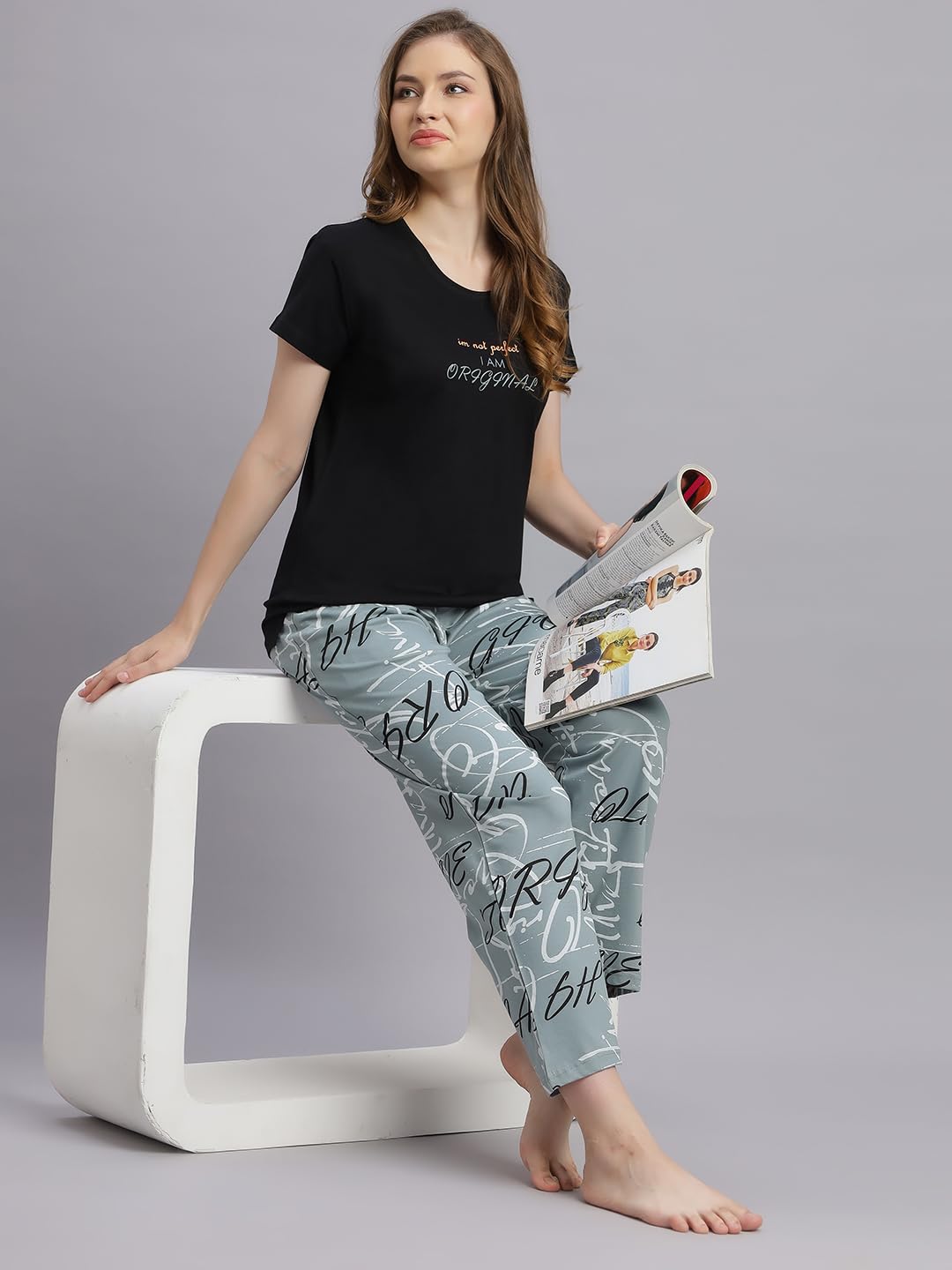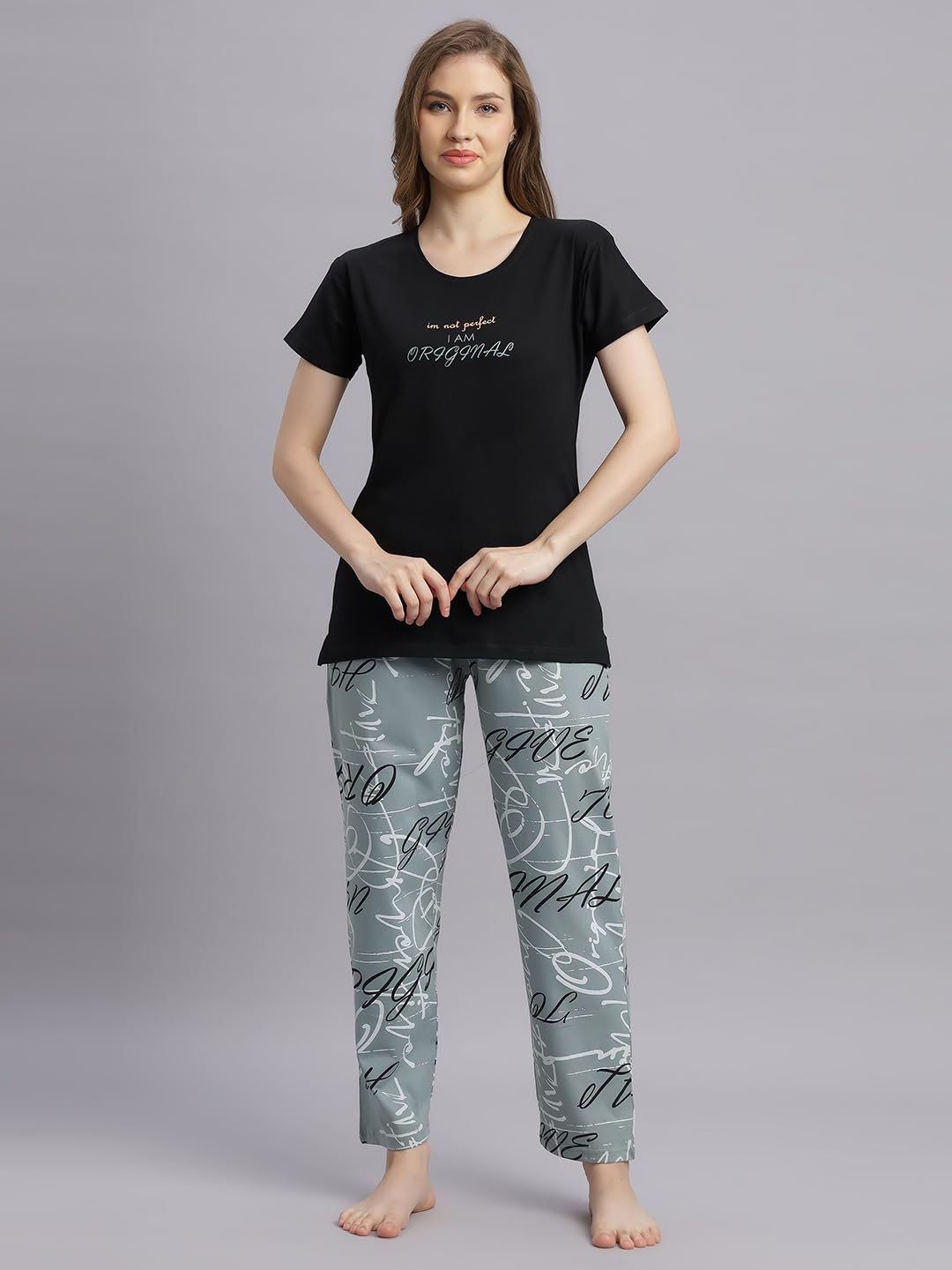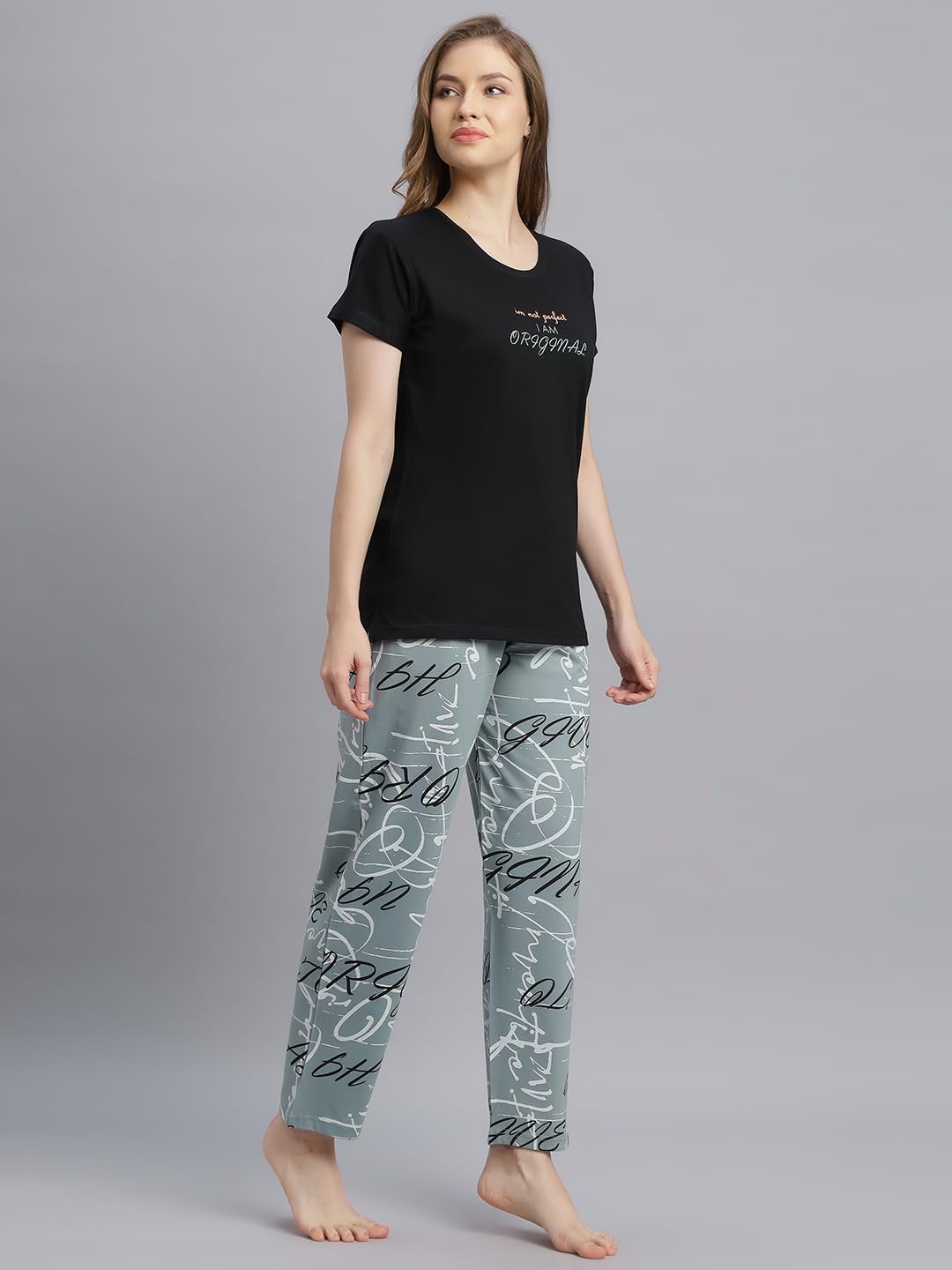 DZZO Premium Cotton Printed Night Suit Set for Women and Girls – Stylish T- T-Shirt and Pyjama Nightwear Dress for Relaxed and Everyday Loungewear