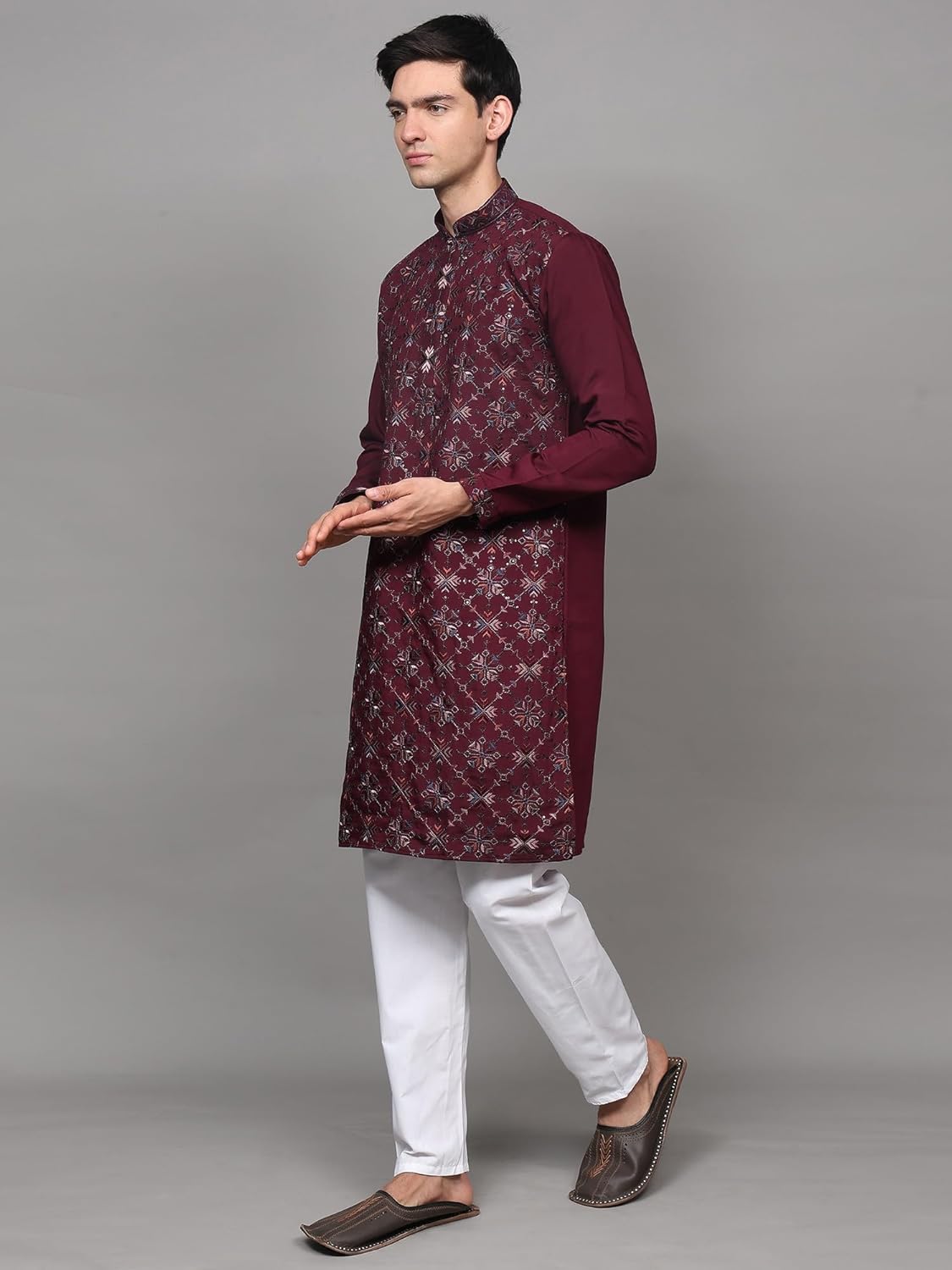 Be the first to review “Exotic India Thread Embroidered Aztec Pattern and Sequins work Art Silk Kurta with Cotton Pajama | Traditional Dress Outfit Kurta Pajama Combo Set for Men’s” Cancel reply
