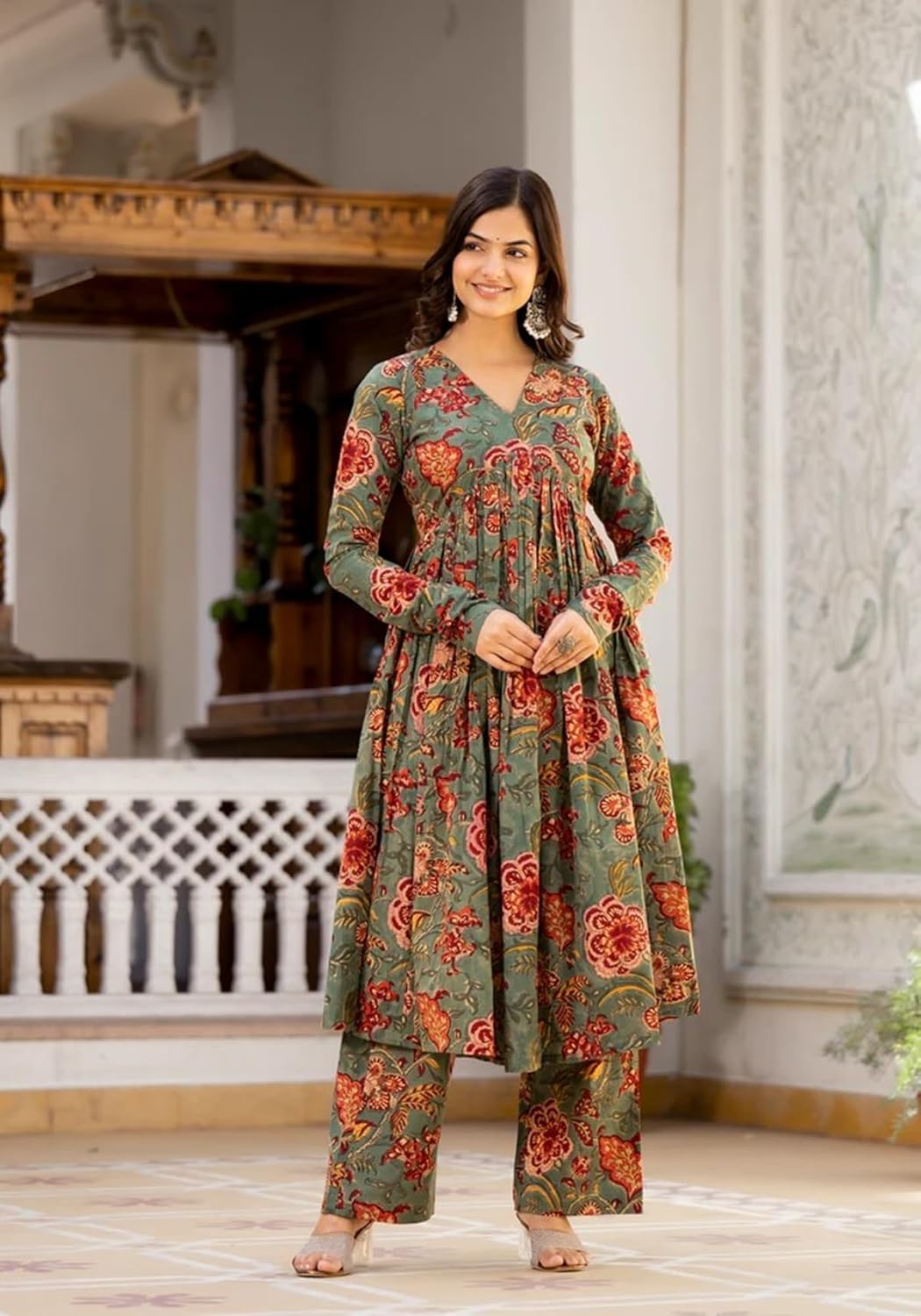 Customers find this kurti set to be of good quality, with pure cotton material that feels luxurious and doesn’t fade. The design features a beautiful pattern, and customers appreciate its perfect fit, comfort, and value for money. They particularly like its versatility, being suitable for both casual outings and festive occasions, with one customer noting it’s perfect for office functions.