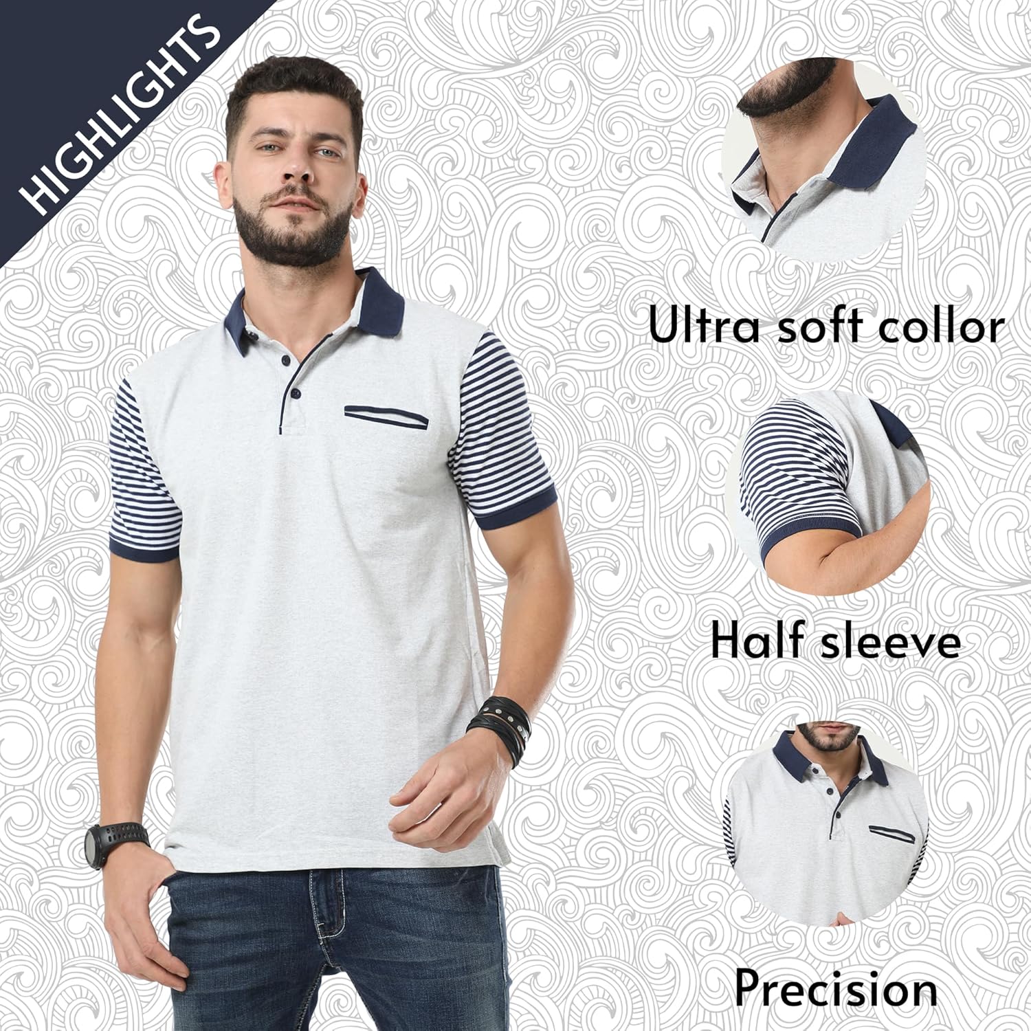 Introduce new style on your collection with this polo t-shirt from Fanideaz. Made of good quality fabric, this t-shirt will keep you at ease. It has a Contrast White stripes which render it smart, while the half sleeves and perfect fit accentuates its overall design.