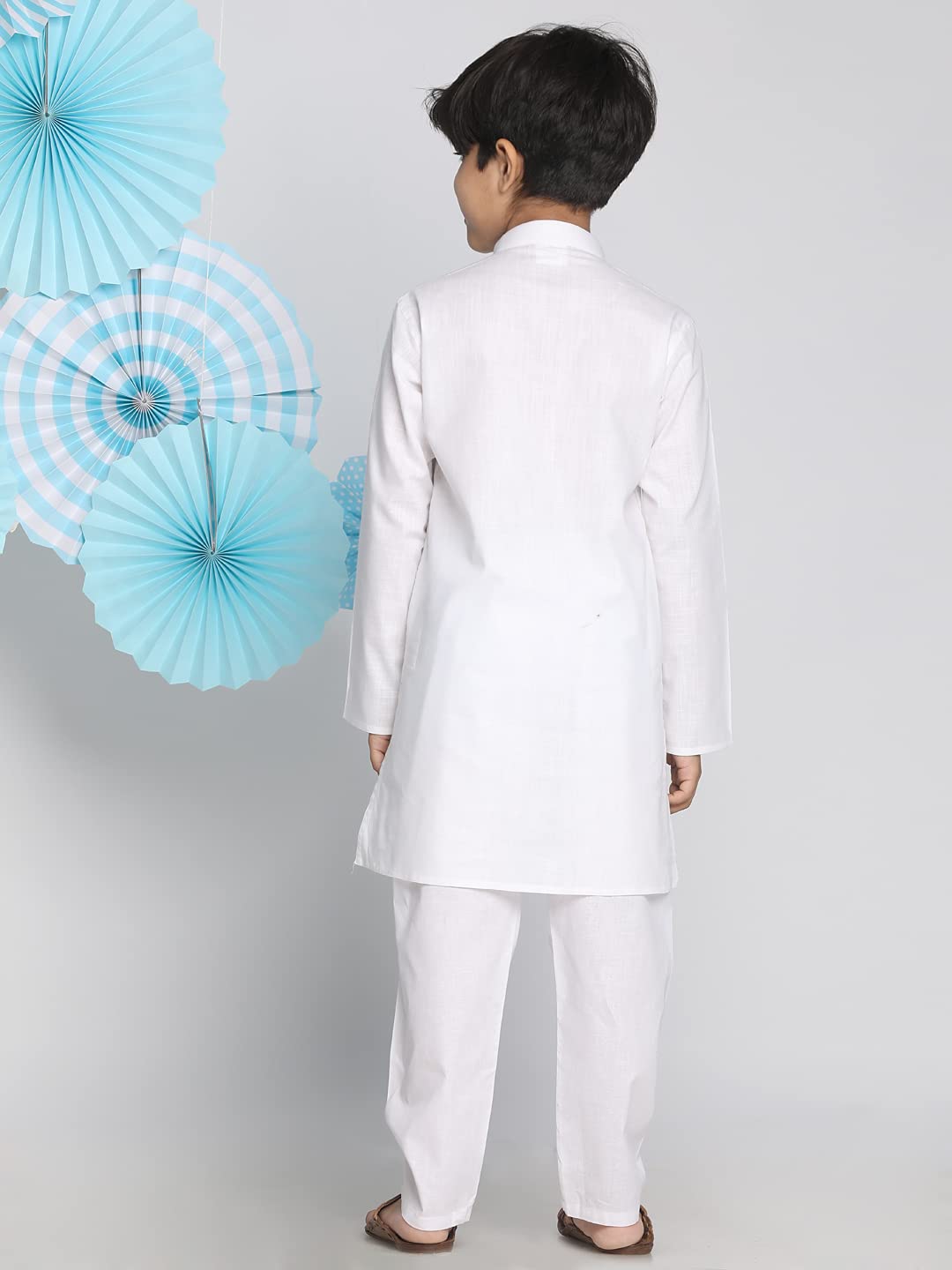 Celebrate Eid in ultimate comfort and style with this Pure Cotton White Kurta and Pyjama Set for boys, complete with a traditional Muslim cap. Crafted from extremely soft cotton fabric, this set offers an all-day comfortable fit, making it perfect for Eid prayers, family gatherings, and other festive celebrations. The kurta features a classic design with a mandarin collar and button closure, giving it a refined, traditional look. Paired with a relaxed cotton pyjama, this set provides maximum comfort and freedom of movement. The addition of the Muslim cap completes the festive look, adding a culturally appropriate touch to your little one’s outfit. This set is perfect for making a stylish statement on Eid and beyond.