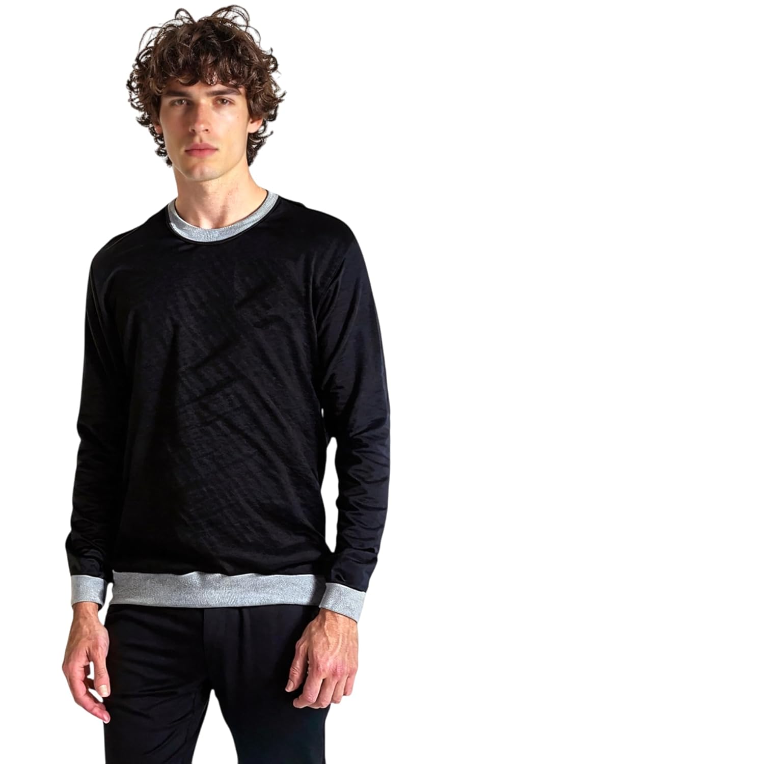 jhakaas Trending Classic Long Sleeve Crewneck Sweatshirt, Black with Grey Trim Sweater, Casual Cotton Blend Pulover for Men and Women/Winter Tshirt