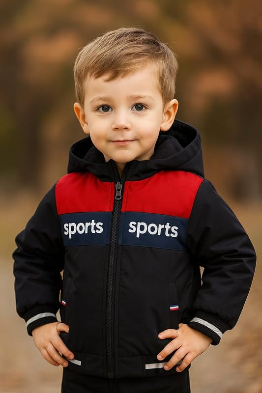 Kids Woolen Hooded Jacket – Warm Winter Coat for Boys, Casual Sports Style (Red,Multisize)