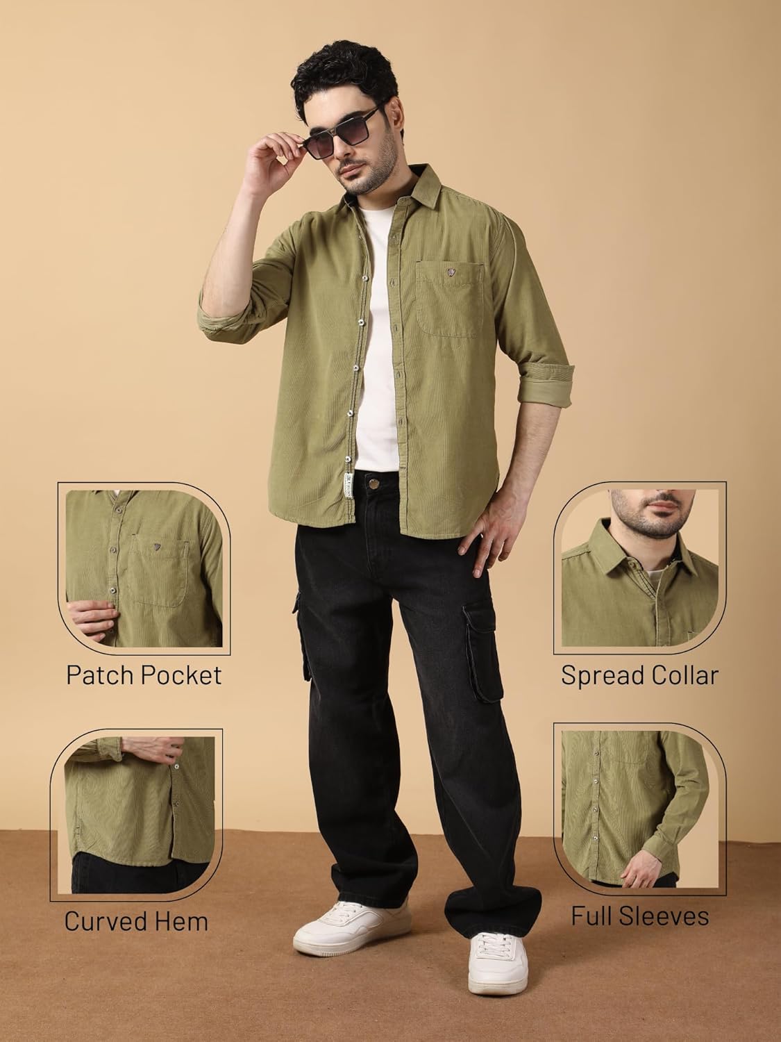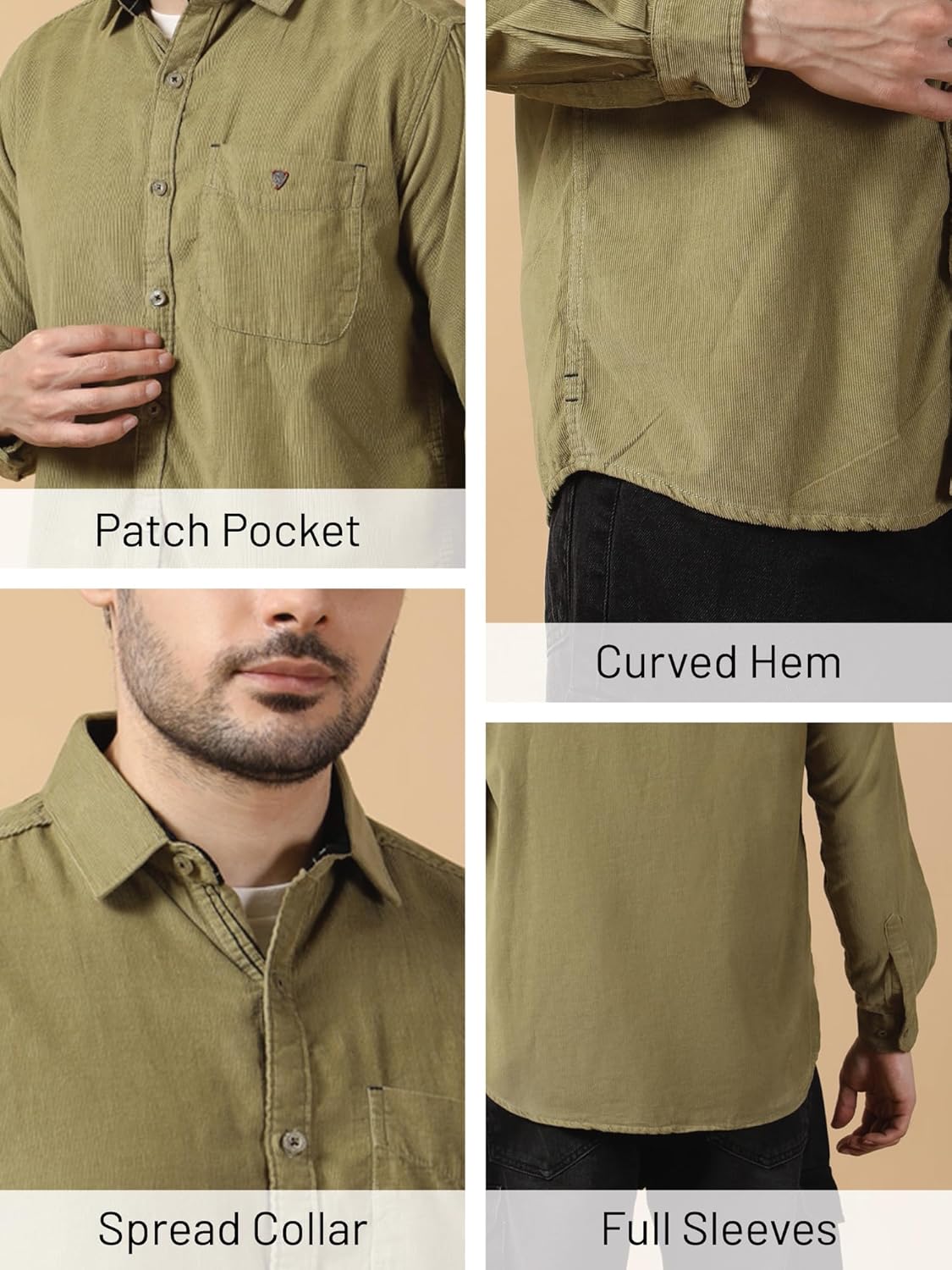 Be the first to review “Kuons Avenue Men’s Slim Fit Corduroy Casual Shirt | Hip Length, Smart Casual, Full Sleeve, Spread Collar | Utility” Cancel reply