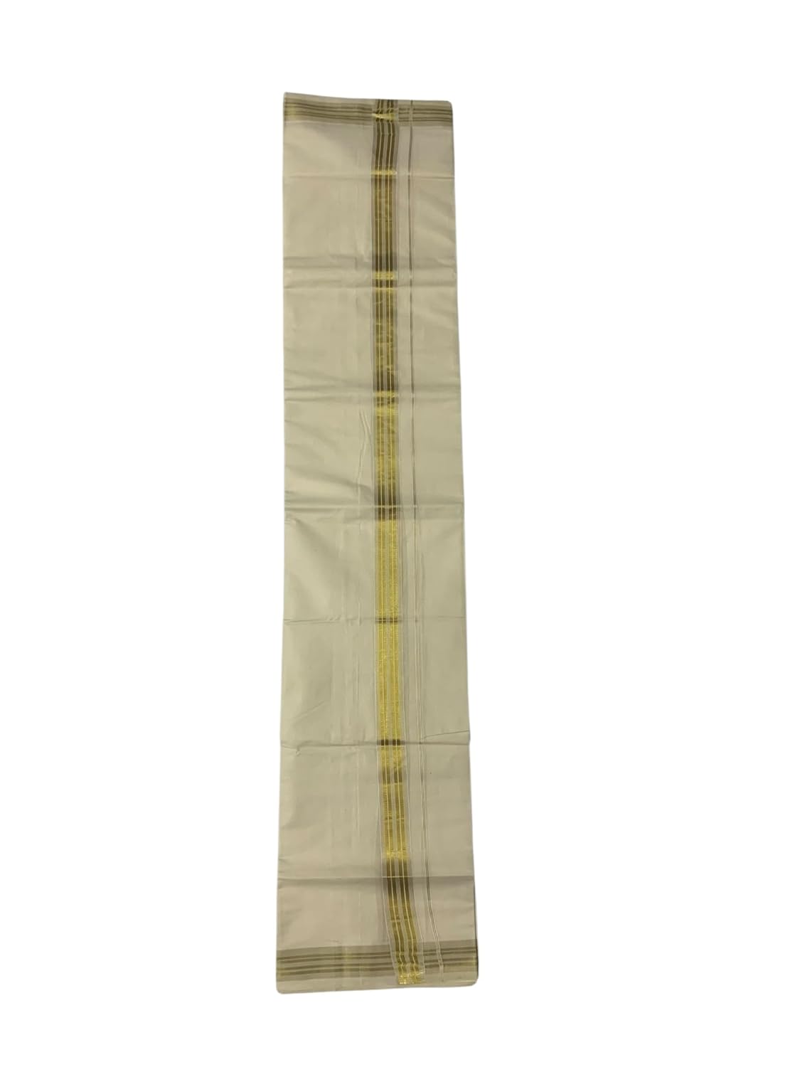 Discover the epitome of traditional South Indian attire with our Mens Kuthampully Kerala Kasavu Dhothi. Crafted from plain cotton, this dhoti exemplifies elegance and comfort, ideal for festivals and cultural celebrations. Featuring a convenient running pocket and a golden Mundu closure, this dhoti seamlessly blends traditional craftsmanship with modern convenience. Embrace the authenticity of South Indian Zari Kasavu with every wear, making it perfect for men who appreciate cultural heritage and premium quality attire. Whether worn for weddings or religious ceremonies, our dhoti promises timeless style and sophistication, ensuring you stand out with its unique blend of tradition and contemporary design.