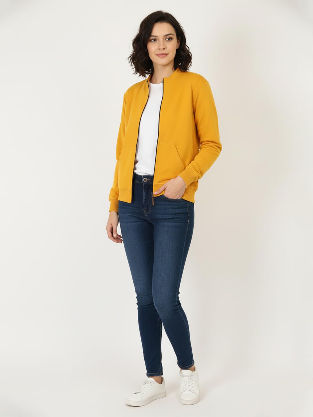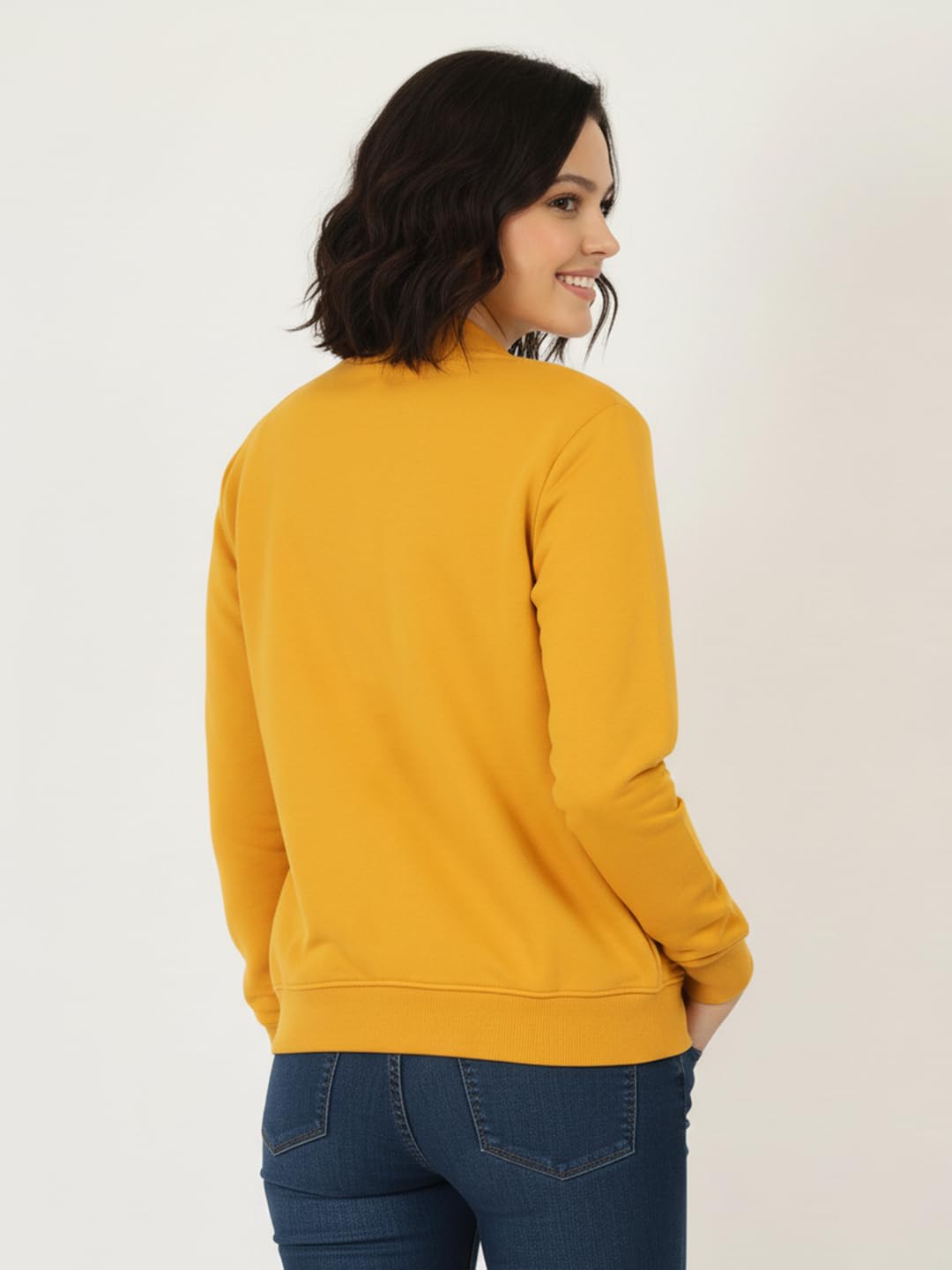 LEOTUDE Women’s Drop Shoulder Loose Fit Loopknit Bomber Jacket with Zipper Closure and Side Pockets Jackets For Women (Colour: Mustard)