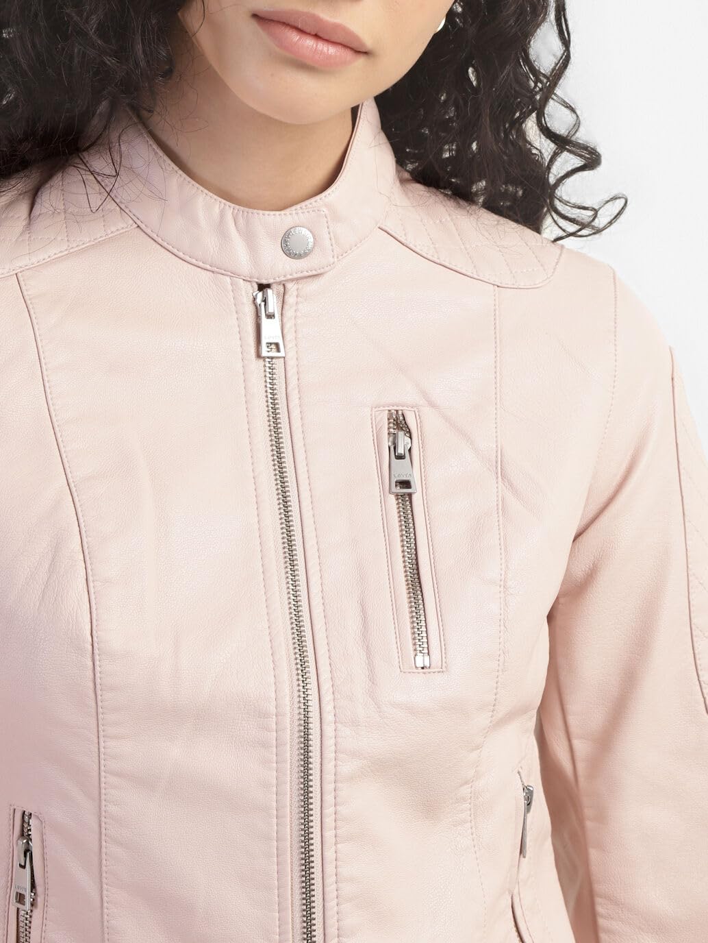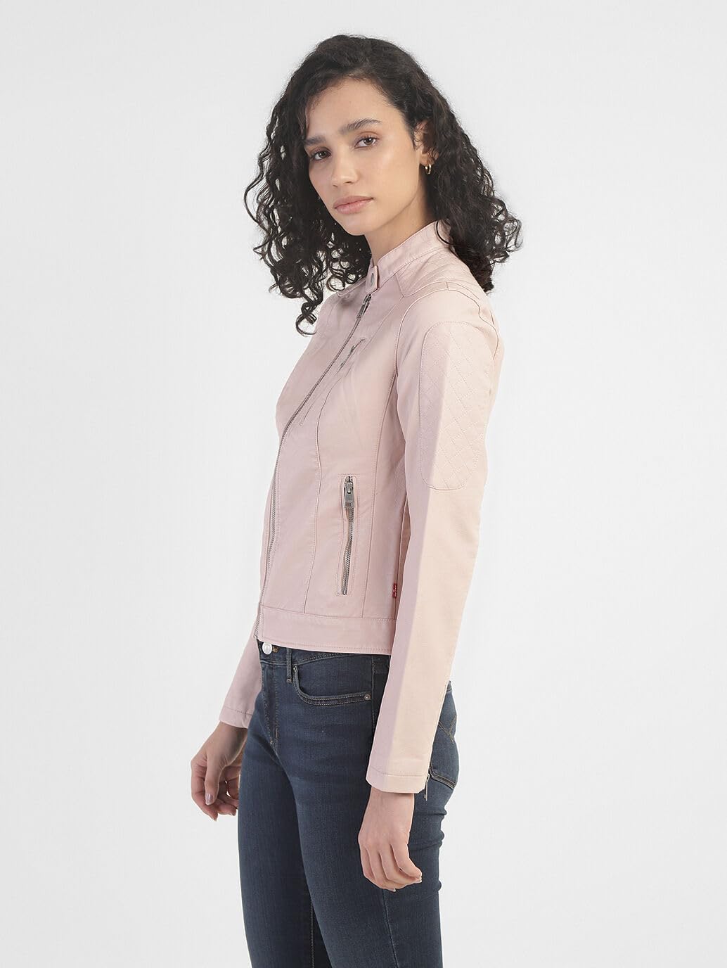 Flaunt your effortless style by donning the chic and versatile Levi’s®Women’s Band Neck Leather Jacket. It boasts a solid and is designed in an eye-catching beige. This jacket is crafted from polyester and full sleeves for a comfy fit.