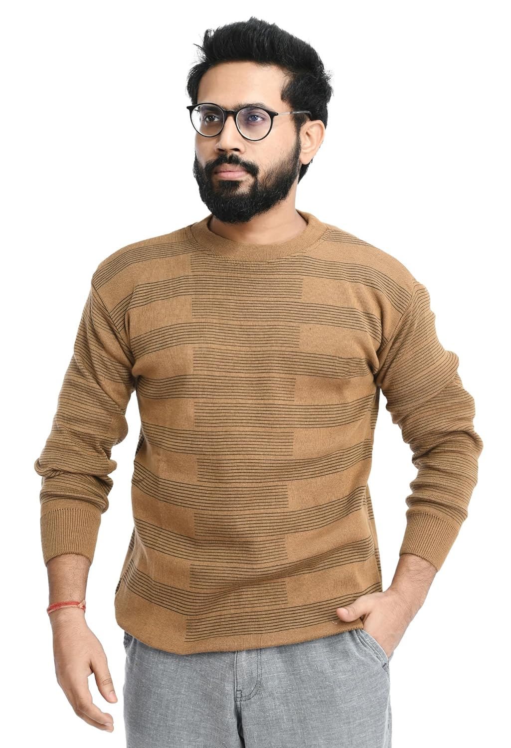 Men Round Neck Full Sleeve Woolen Pullover Winter Sweaters for Gents (OSWAL LINE Sweater/XXL/Dark Fawn)