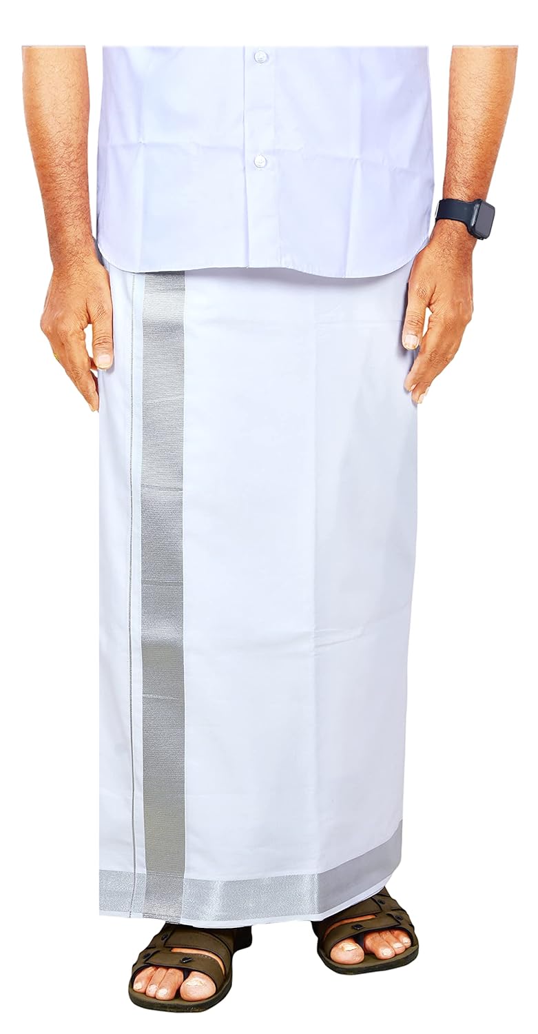 Mens Super Rich Jari Border 100% Cotton Dhoti 4.00 Meters Double Vesti/Mundu