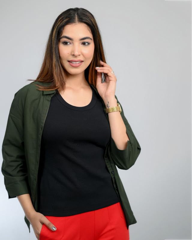 Mlada Cotton Ribbed Knit Tops for Women with Non Transparent Fabric | Stretchable Rib Knitted Sleeveless Racerback Tank Top with Crew Neck | Fitted Rib Knitted Cropped Vest Top