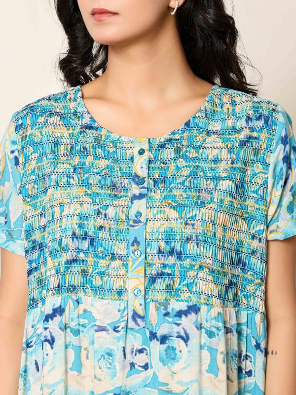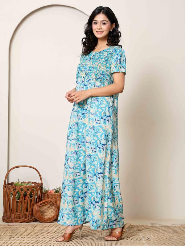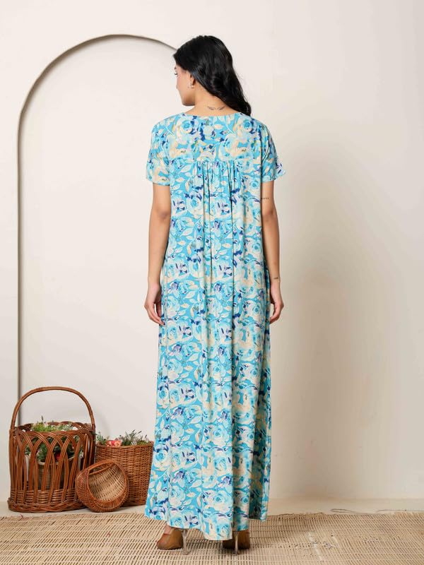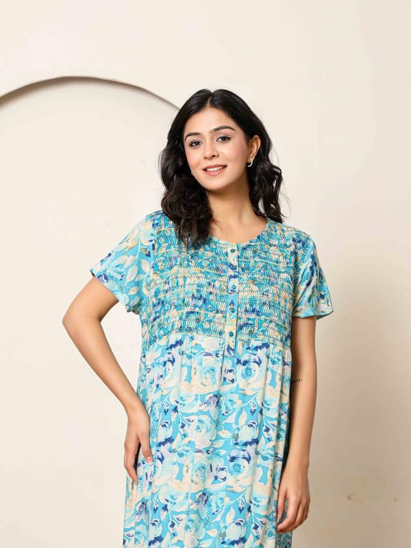 NIHSAMAH Cotton Nighty for Women — Printed Stylish Night Gown, Comfortable Sleepwear Long Nightwear, Maxi
