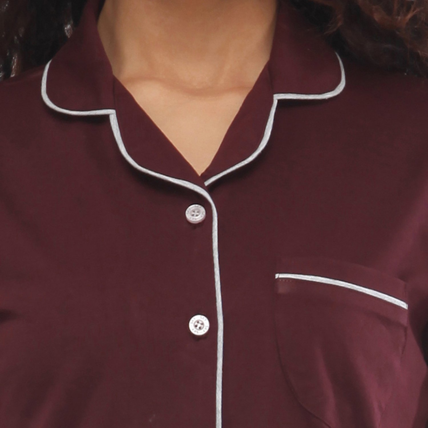 Front button closure with contrast cord piping at the placket, pockets and cuffs.