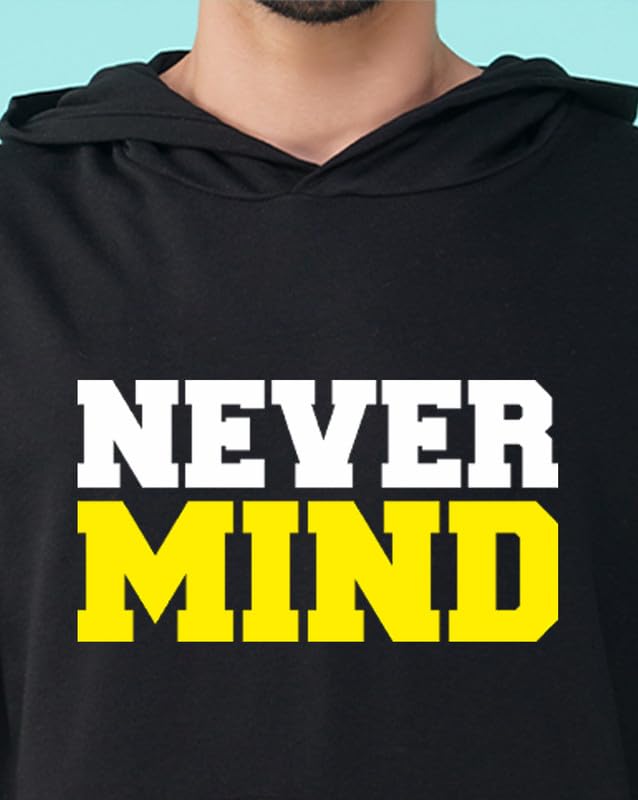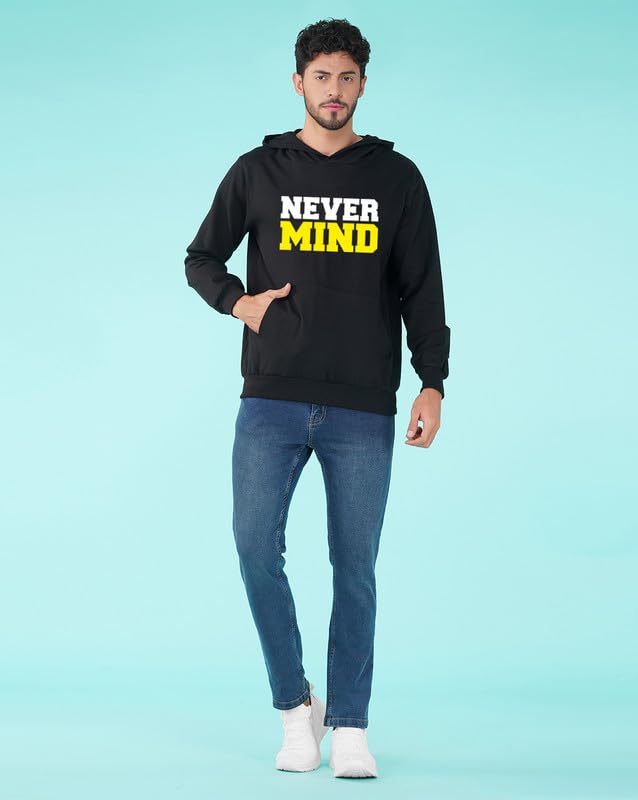 Nusyl Men’s Never Mind Text Printed Hoodie for Winter Wear | Full Sleeves Hoodies with Pocket | Western Stylish Sweatshirt for Men | Hooded Neck Standard Length Men’s Hoodie