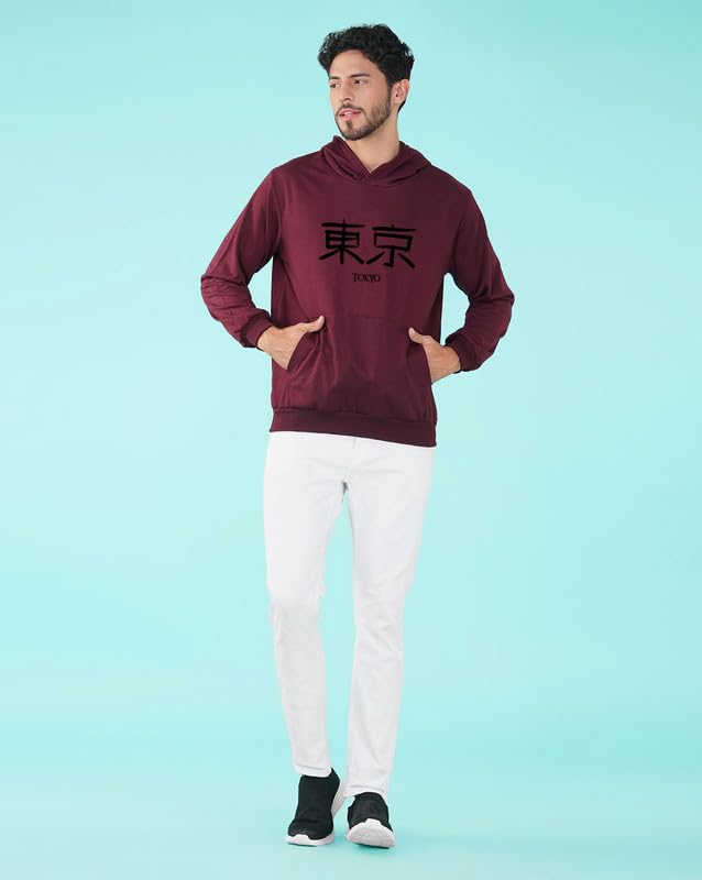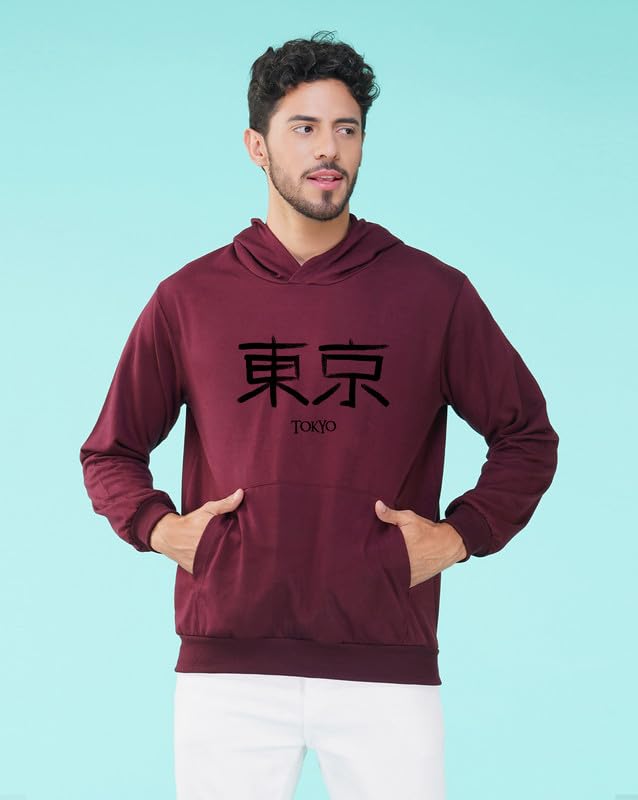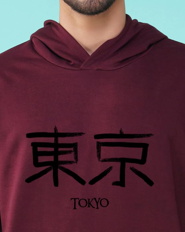 Nusyl Men’s Tokyo Text Printed Hoodie for Winter Wear | Men’s Fleece Hoodie | Full Sleeves Hoodies with Pocket | Western Stylish Sweatshirt for Men | Hooded Neck Standard Length Men’s Hoodie