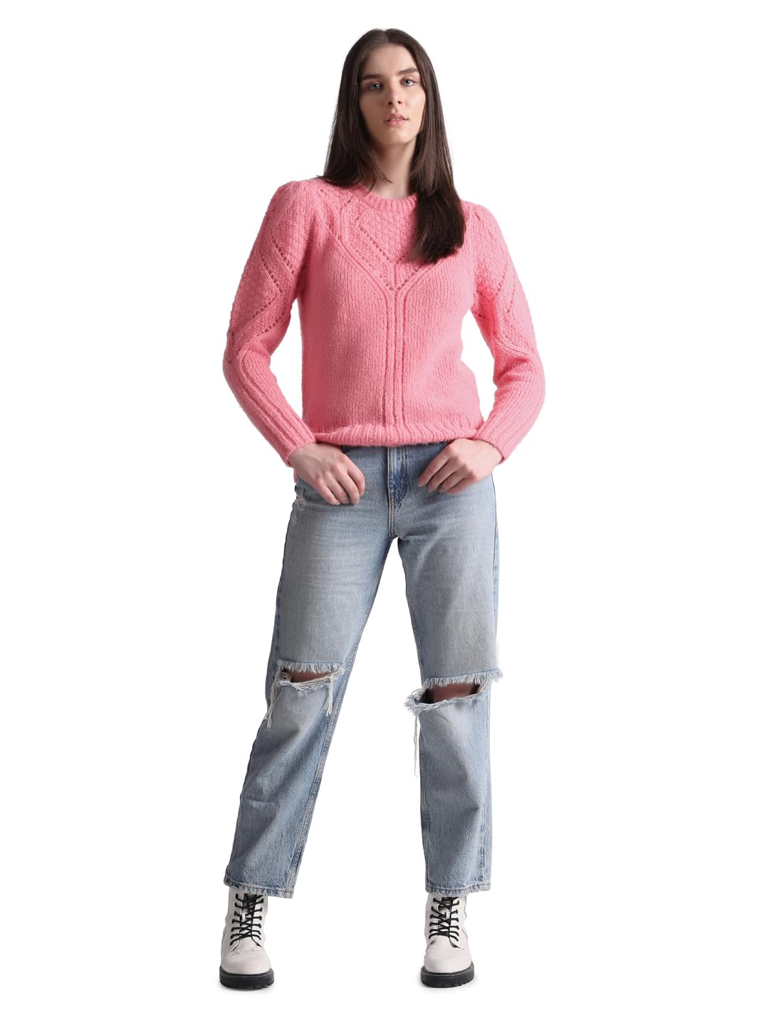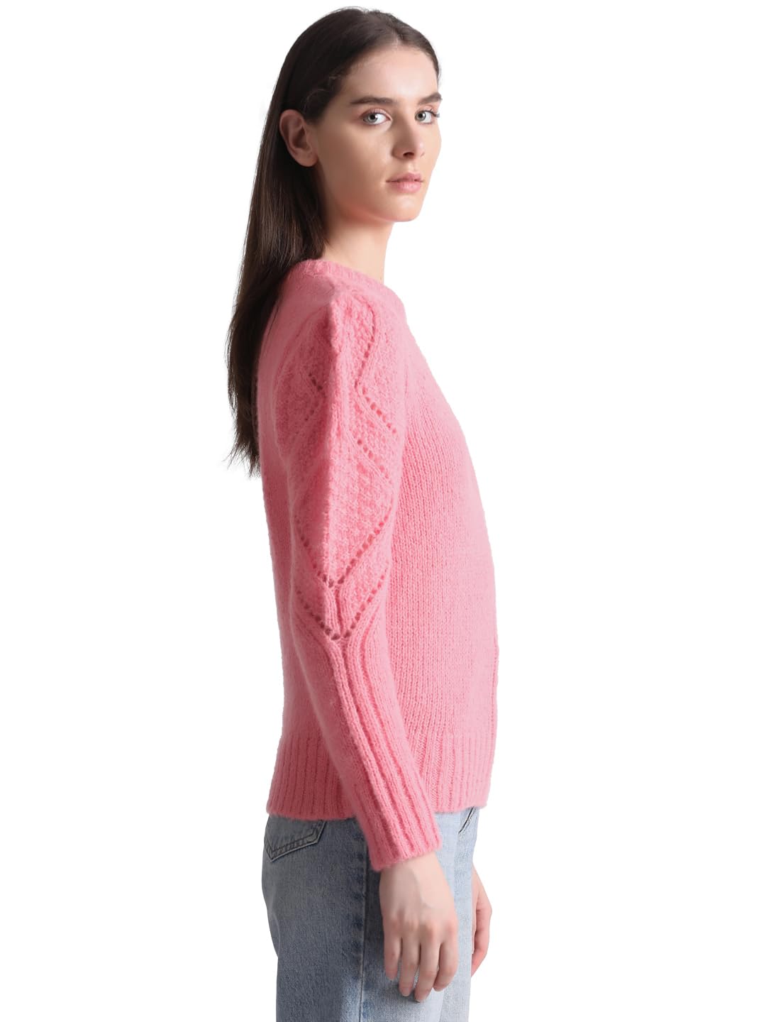 Pullover in a rib knit with pointelle details and a round neck.Long sleeves ,ribbing around the neckline, cuffs and hem.