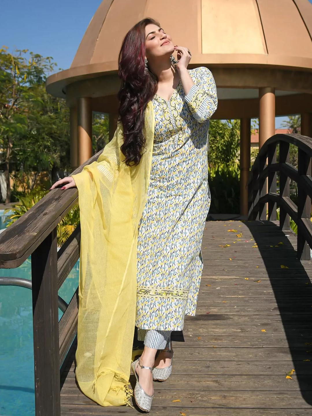Pinkmint Women’s Cotton Blend Kurta Set l Stylish Printed Straight Kurta with Pant & Dupatta l Fancy Ethnic Set (Pack of 1)