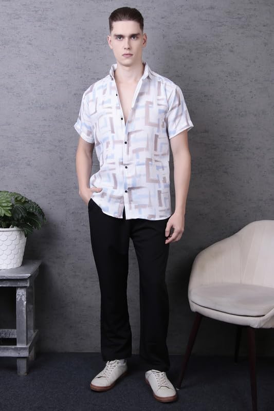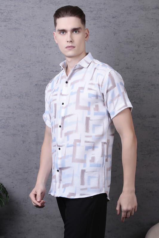 Polyester Checkered Casual Regular Fit Collared Neck Button Down Stylish Half Sleeve Shirt for Men 005