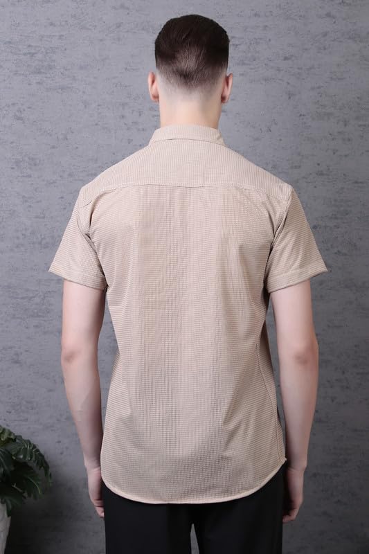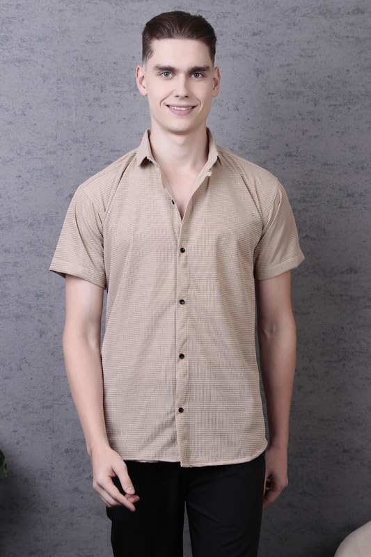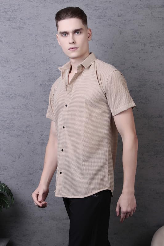 Polyester Textured Casual Regular Fit Collared Neck Button Down Stylish Half Sleeve Shirt for Men 006