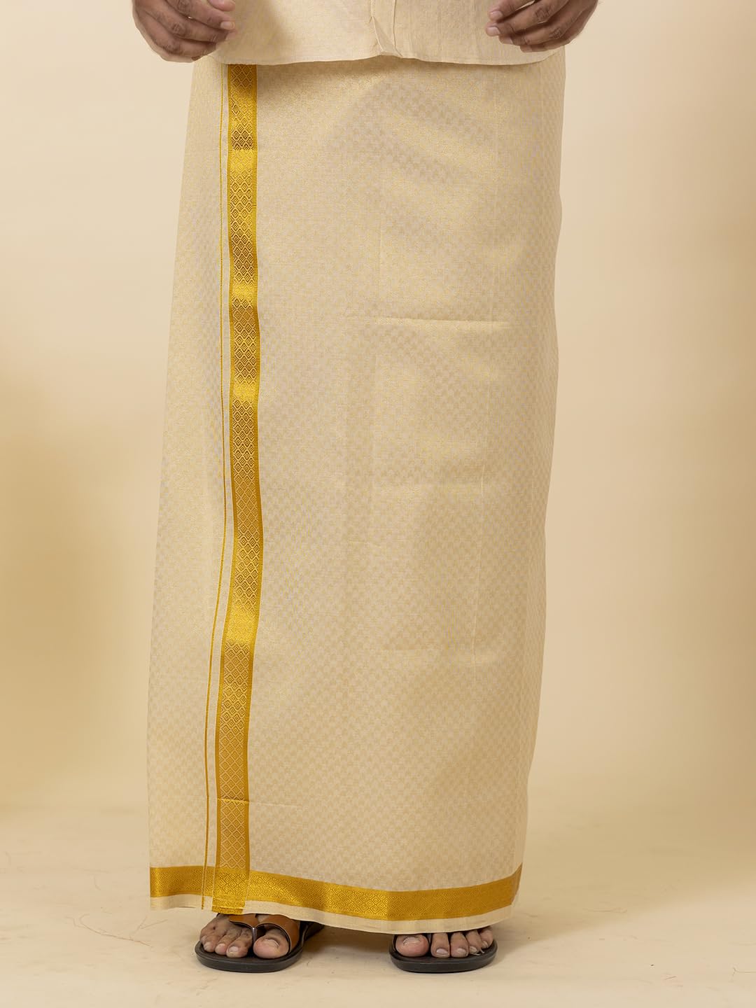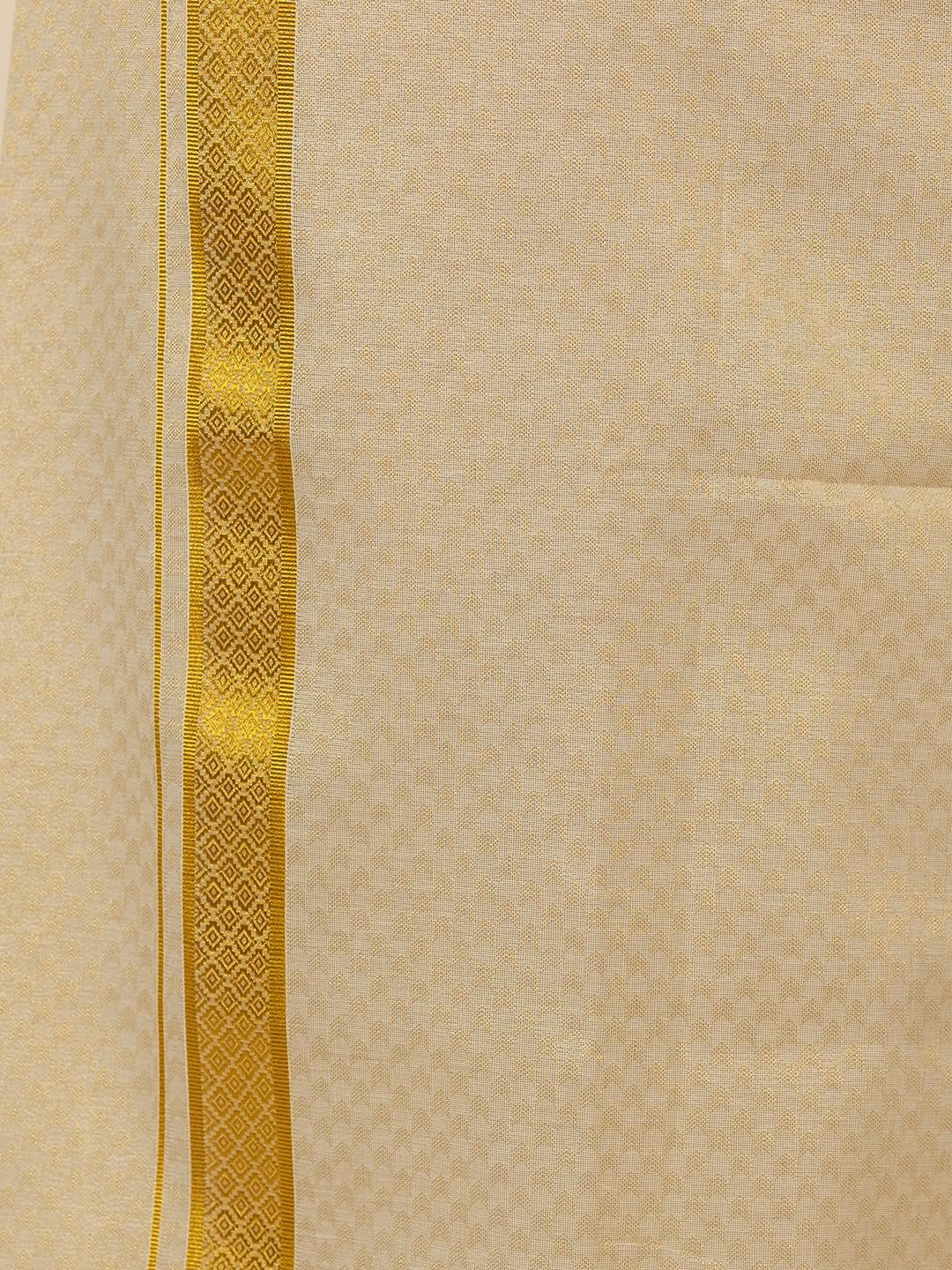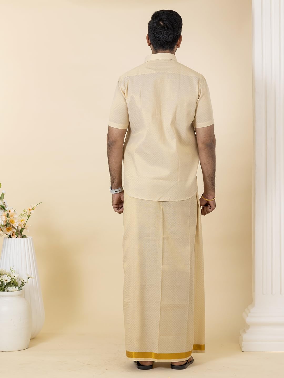 RAMRAJ COTTON Men Gold Tissue Jacquard Half Sleeves Shirt with Matching Dhoti Set