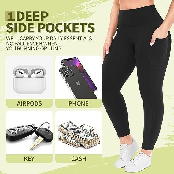 SHAPERX Women Compression Legging with Side Pocket Workout Yoga Workout Pants High Waited Tummy Control Pack of 1