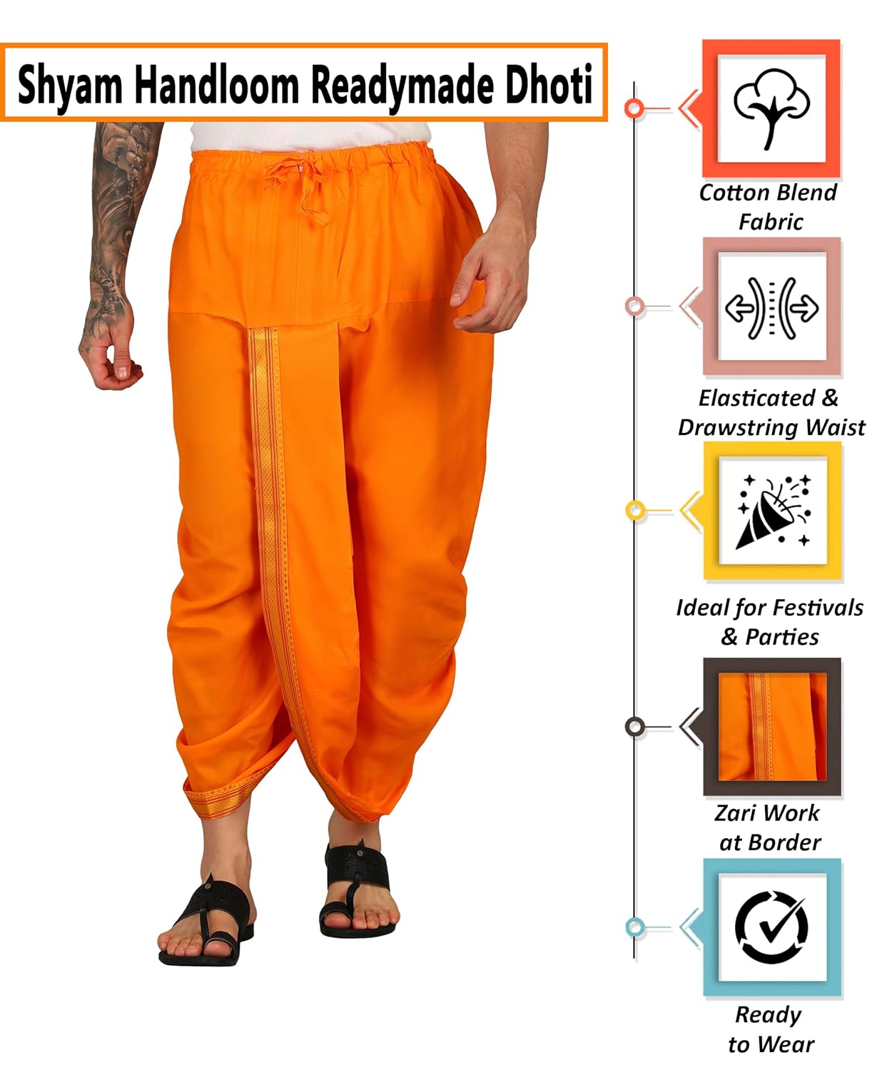 Shree Aparajeet Creations Mens Panjakejam Readymade Golden Zari Border Elastic Drawsting Waist Band Dhoti Silk Free Size
