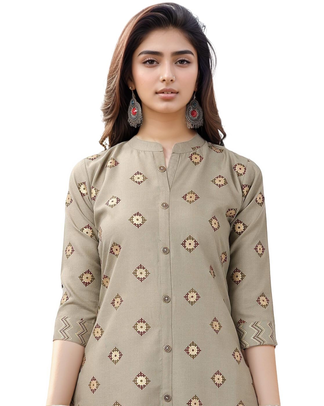 Be the first to review “SMOWKLY Premium Women’s Cotton Blend Motif Chevron Print Kurta Palazzo Set || Regular Fit 3/4 Sleeve Chinese Collar || Modern Ethnic Outfit for Casual & Office Wear” Cancel reply