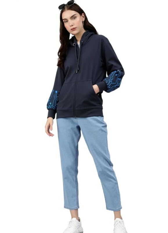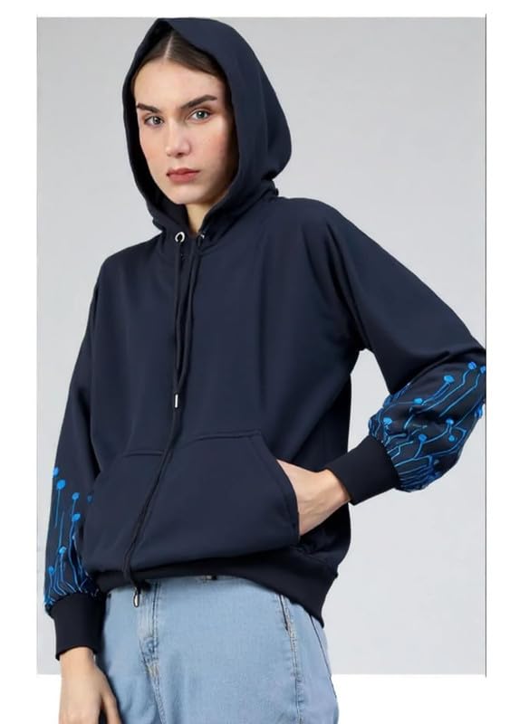 Solid Zip-Up Hoodie for Women’s | Long Sleeves Hoodie with Print Casual Wear